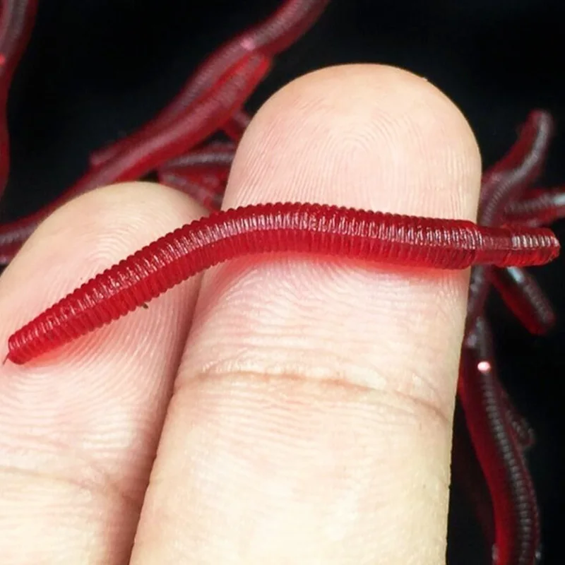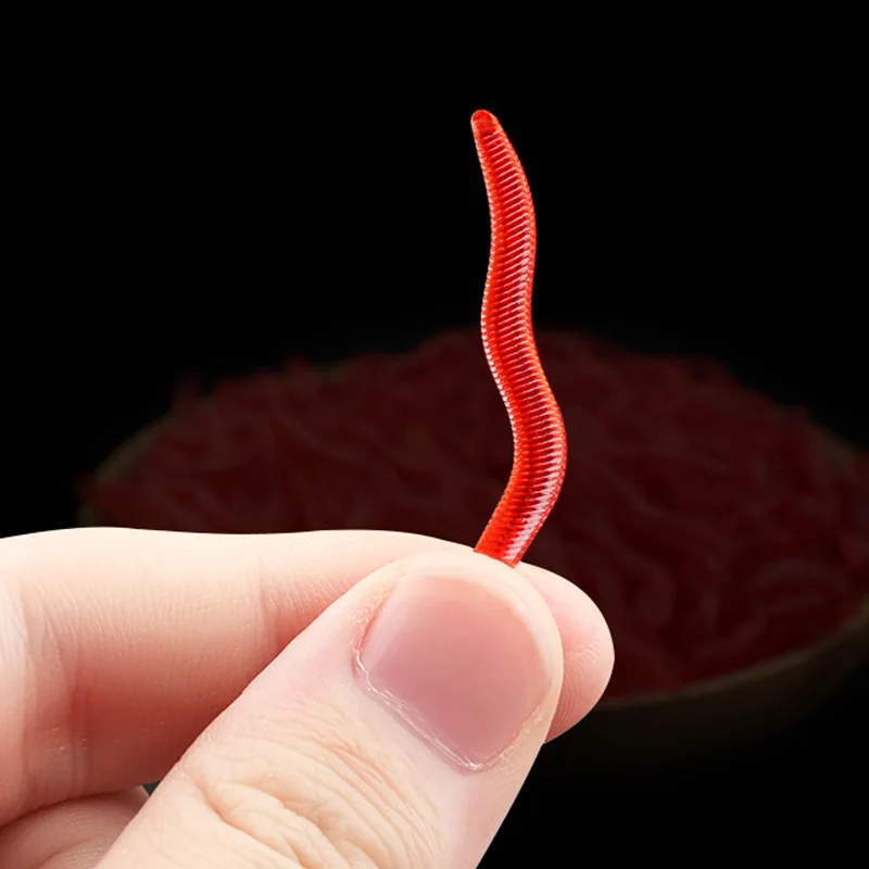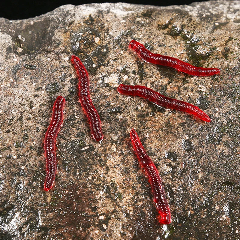 50 o 100 piezas de gusano rojo suave señuelo de lombriz de tierra realista con olor a pescado cebo de silicona Artificial aditivo para camarones carpa lubina aparejos de pesca