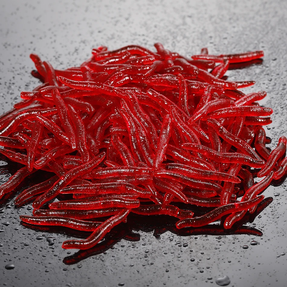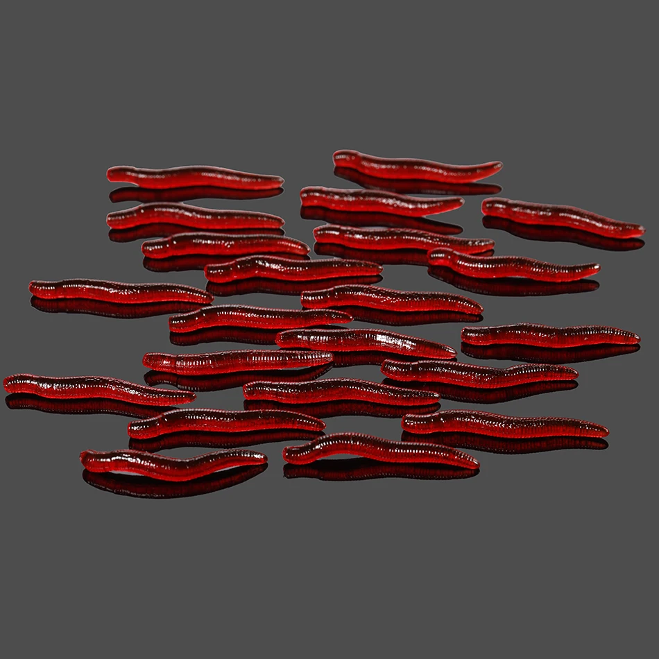 Señuelo suave de gusano rojo realista, 20 piezas-100 Uds., 35mm, pesca de lombriz de tierra, cebo Artificial de silicona, aditivo para camarones y pescado, coche de lubina