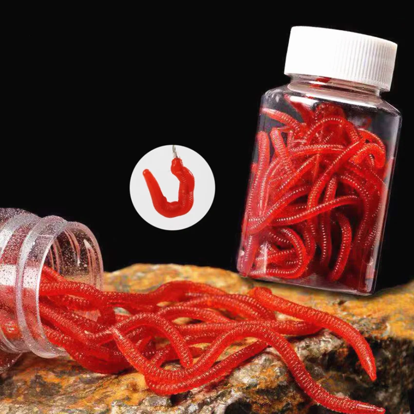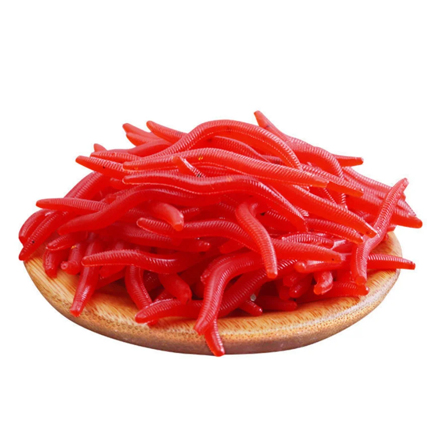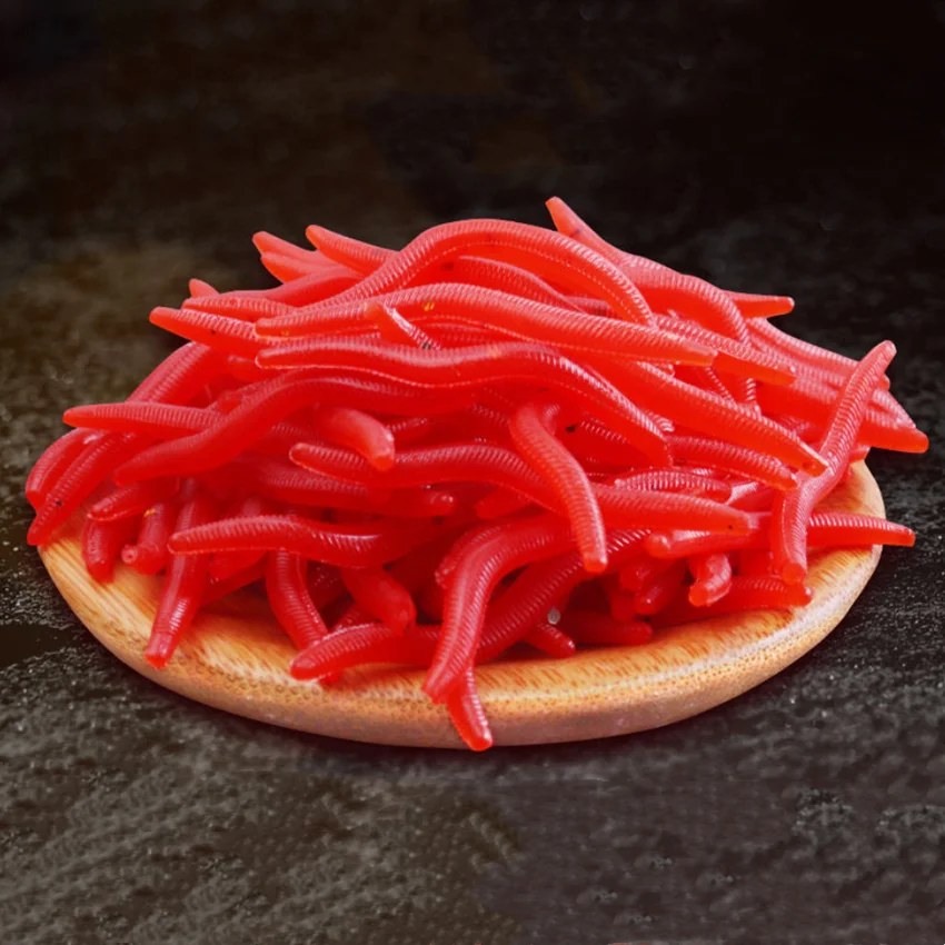 Señuelo suave de gusano rojo realista, cebo Artificial de silicona para pesca de lombriz de tierra, olor a Camarón, carpa, lubina, 50/100/200 piezas