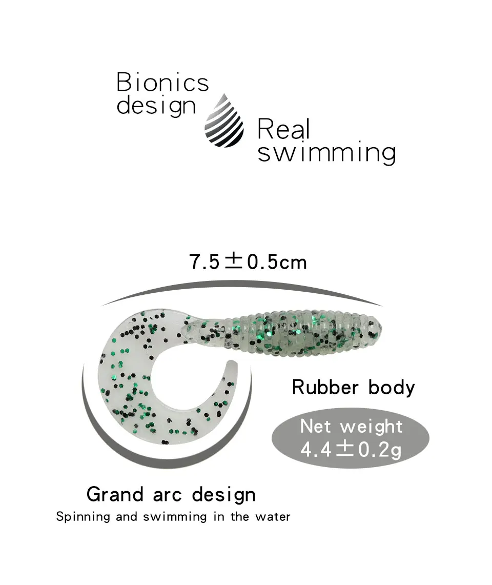 Señuelo suave de marca W.P.E, 5 unidades por paquete, plantilla de silicona Multicolor, cebo de natación, señuelo suave para lubina, Wobblers de pesca con cola en T, aparejos de pesca