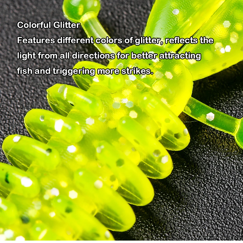 Fácil de usar: Cuelgue los Señuelos de Pesca de cangrejo de plástico hasta el anzuelo de pesca y vivirán en el agua agarrando la atención de los peces.