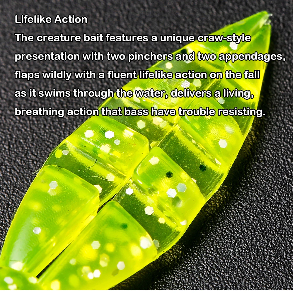 Acción realista: El soft craw cuenta con dos grandes pinchers, crea una acción de natación realista en el agua que los bajos tienen problemas de resistencia.