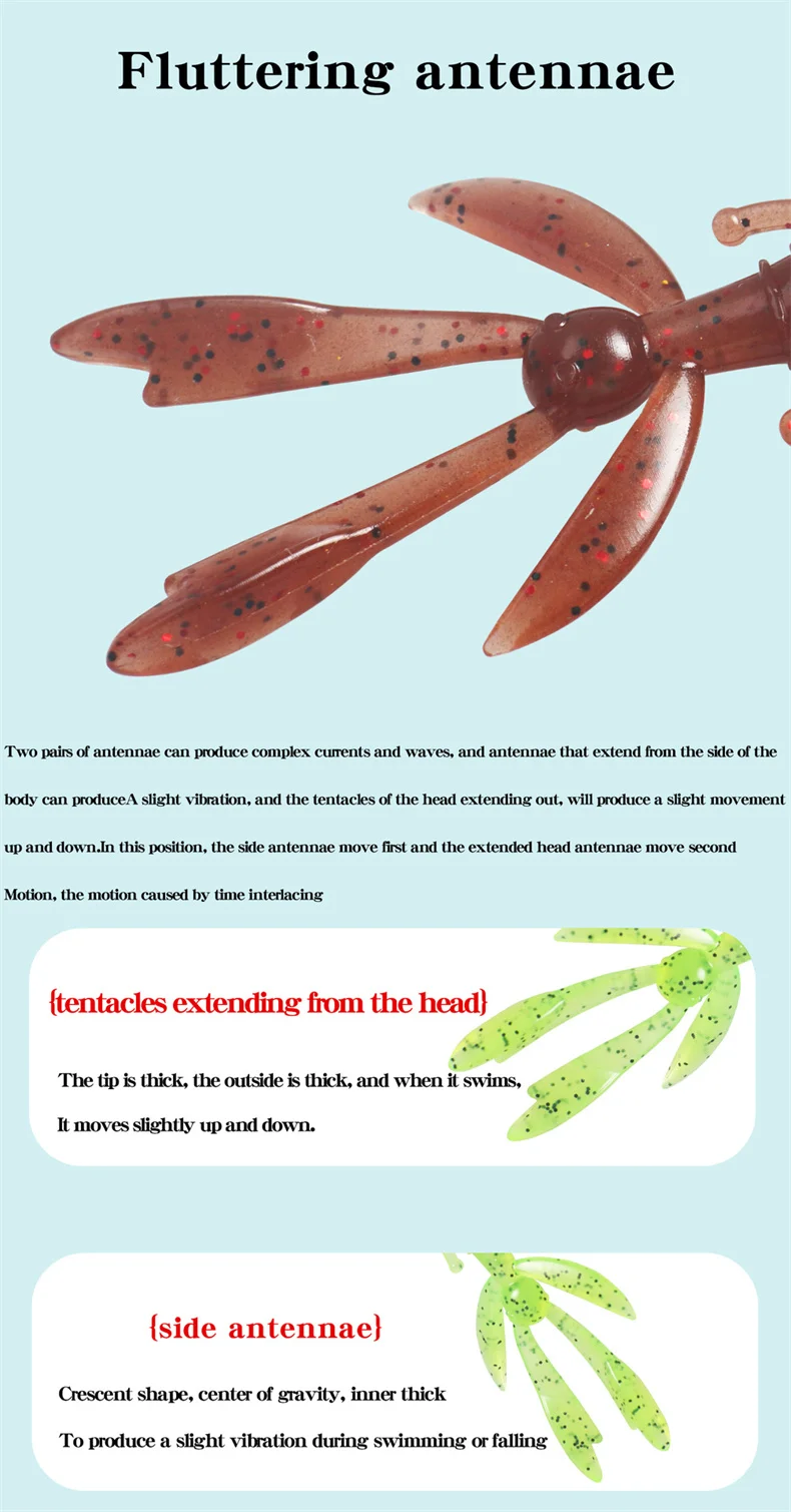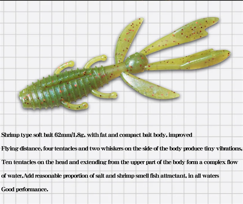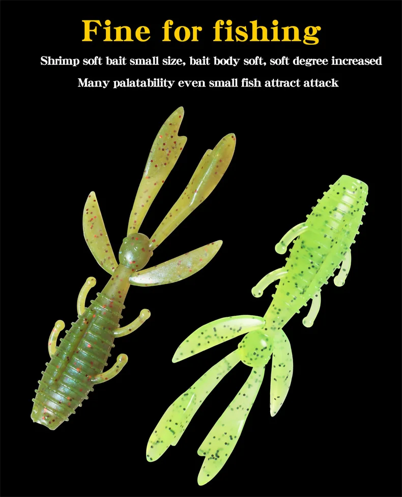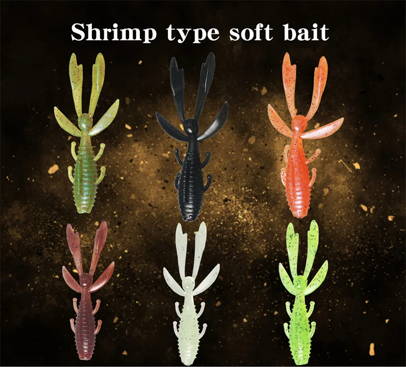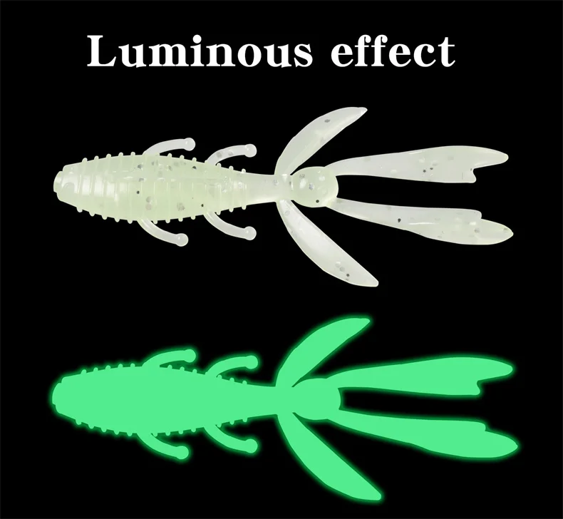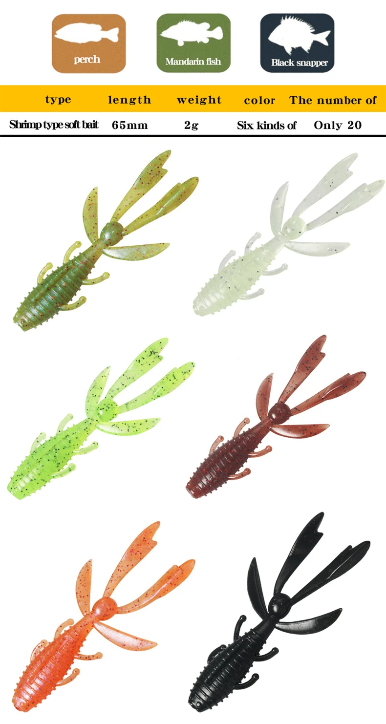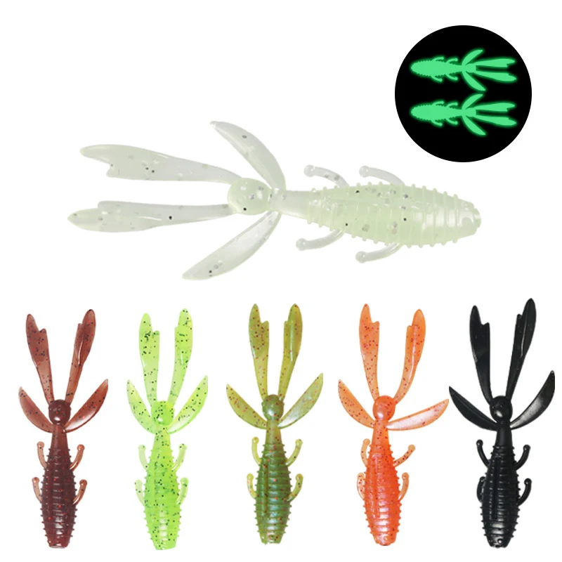 Señuelo suave para pescar, cebos artificiales de goma para camarones de agua salada con brillo de 62mm y 1,8g, 20 unids/lote por paquete