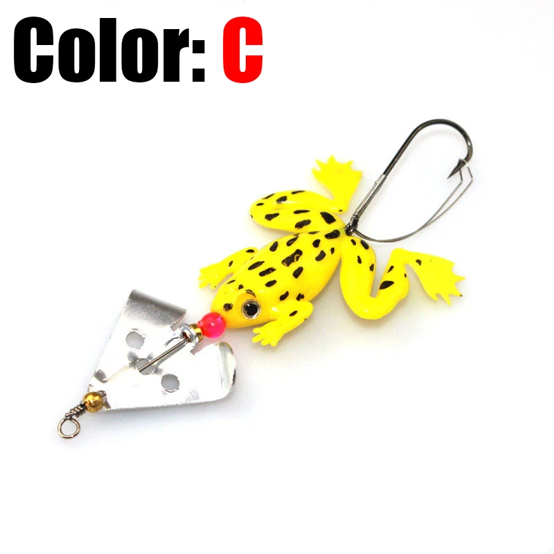 1 ud. Cuchara giratoria anzuelo blando de rana biónica 9cm 6,2g Señuelos de Pesca de silicona cebo Artificial con anzuelo de púas sin Weedless Pesca aparejos de Pesca