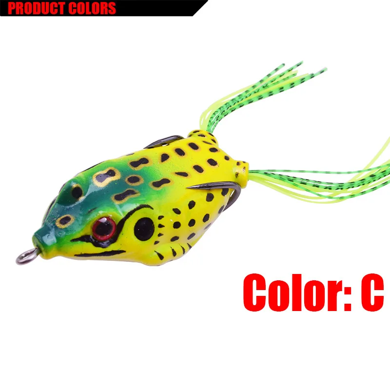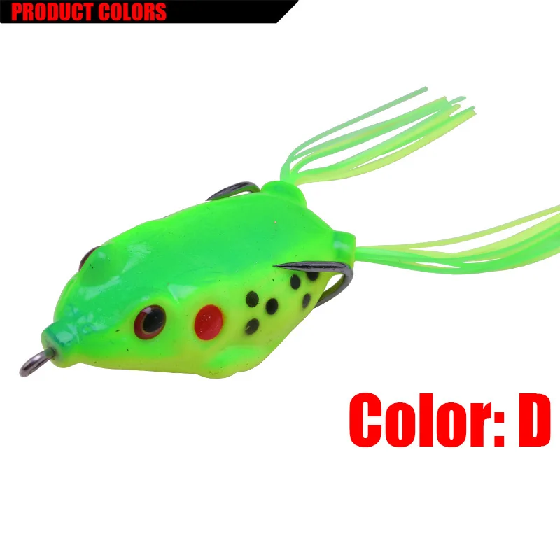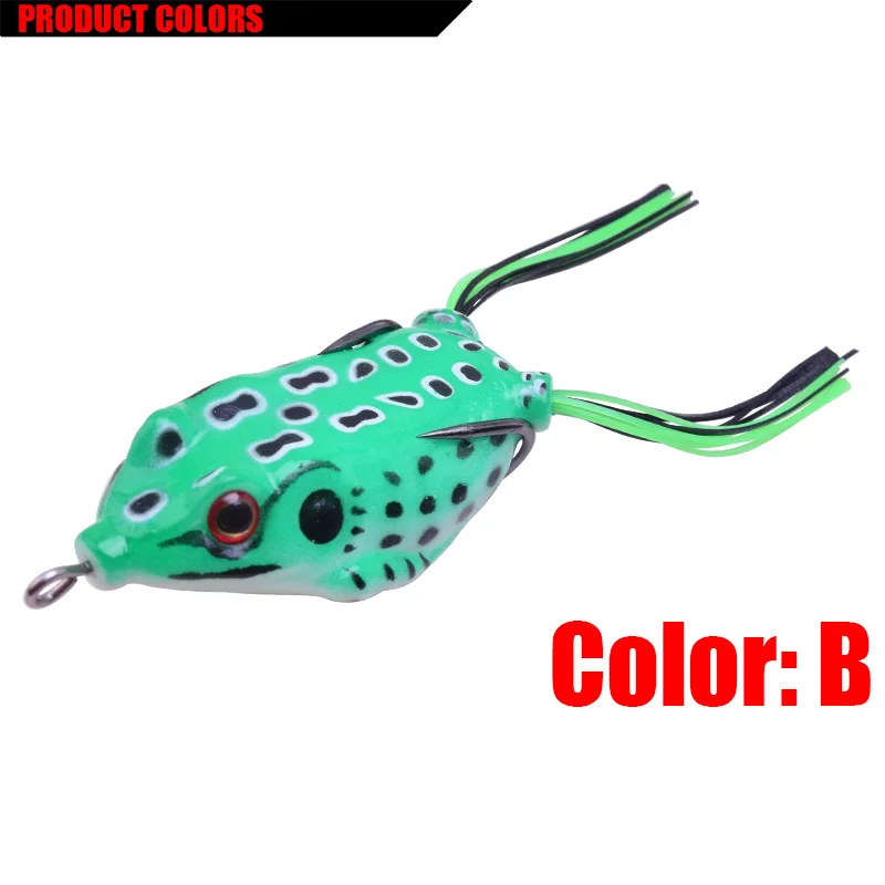 Parámetros del producto:Tipo de señuelo: señuelo blando para lubina de ranaColor: 8 coloresLongitud: 6 cmPeso: 12,5 gProfundidad de natación: agua superiorMaterial: gel de sílice/plásticoTipo de gancho: 2 * gancho afiladoEmbalaje: caja de PVC al por menorlista de embalaje:1 * señuelos blandos de rana