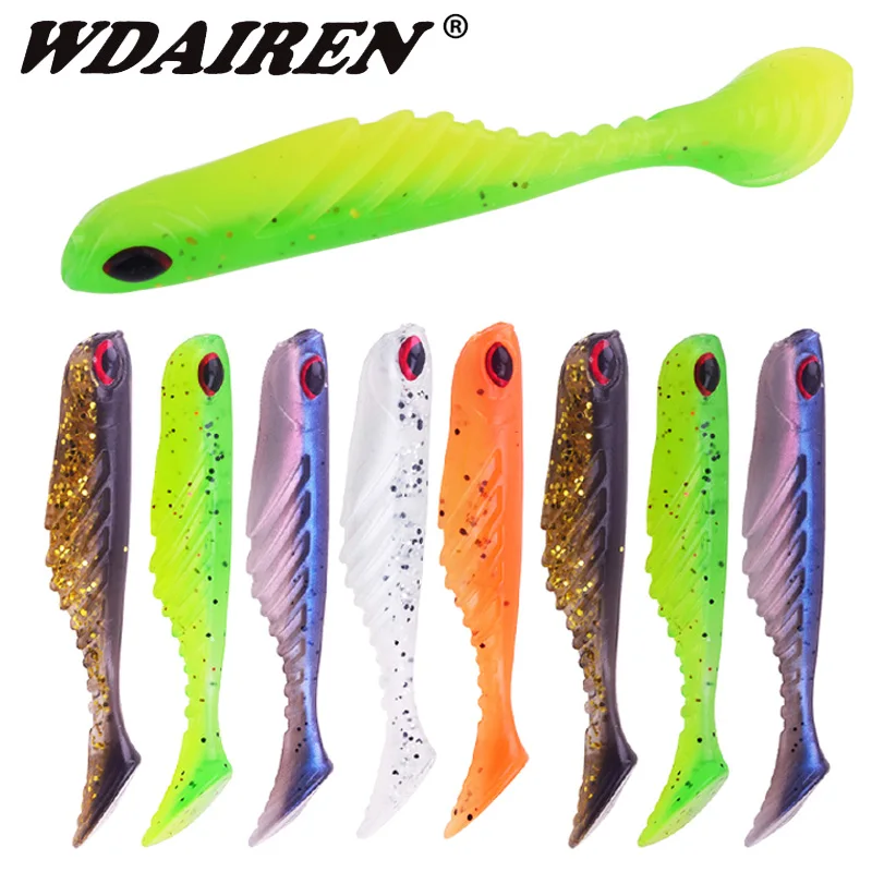 5 piezasunids/lote señuelo suave para Pesca 7cm 2,9g lubina 3D ojos de silicona cebo Artificial Señuelos de Pesca