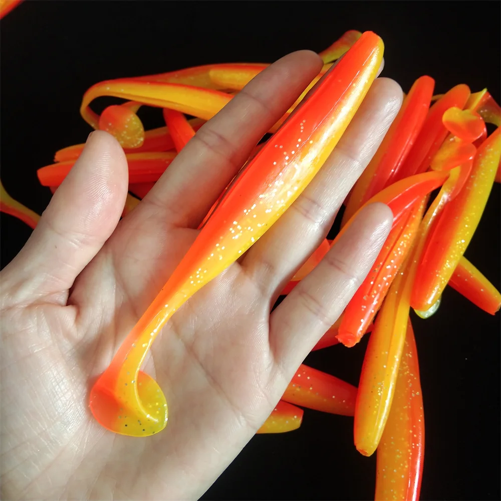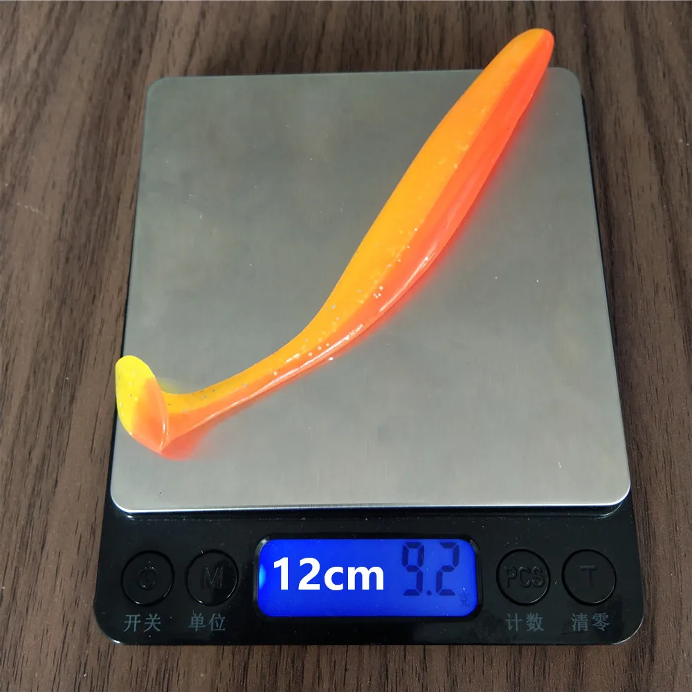 Señuelo suave de silicona para pesca, cebo de sábalo de 15 piezas, 12cm, 9,2g, color amarillo, azul y naranja