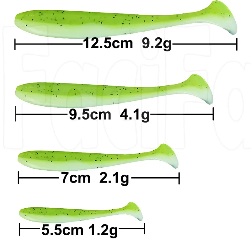 Peso y longitud: 1,2g/5,5 cm, 2,1g/7cm, 4,1g/9,5 cm, 9,2g/12,5 cm