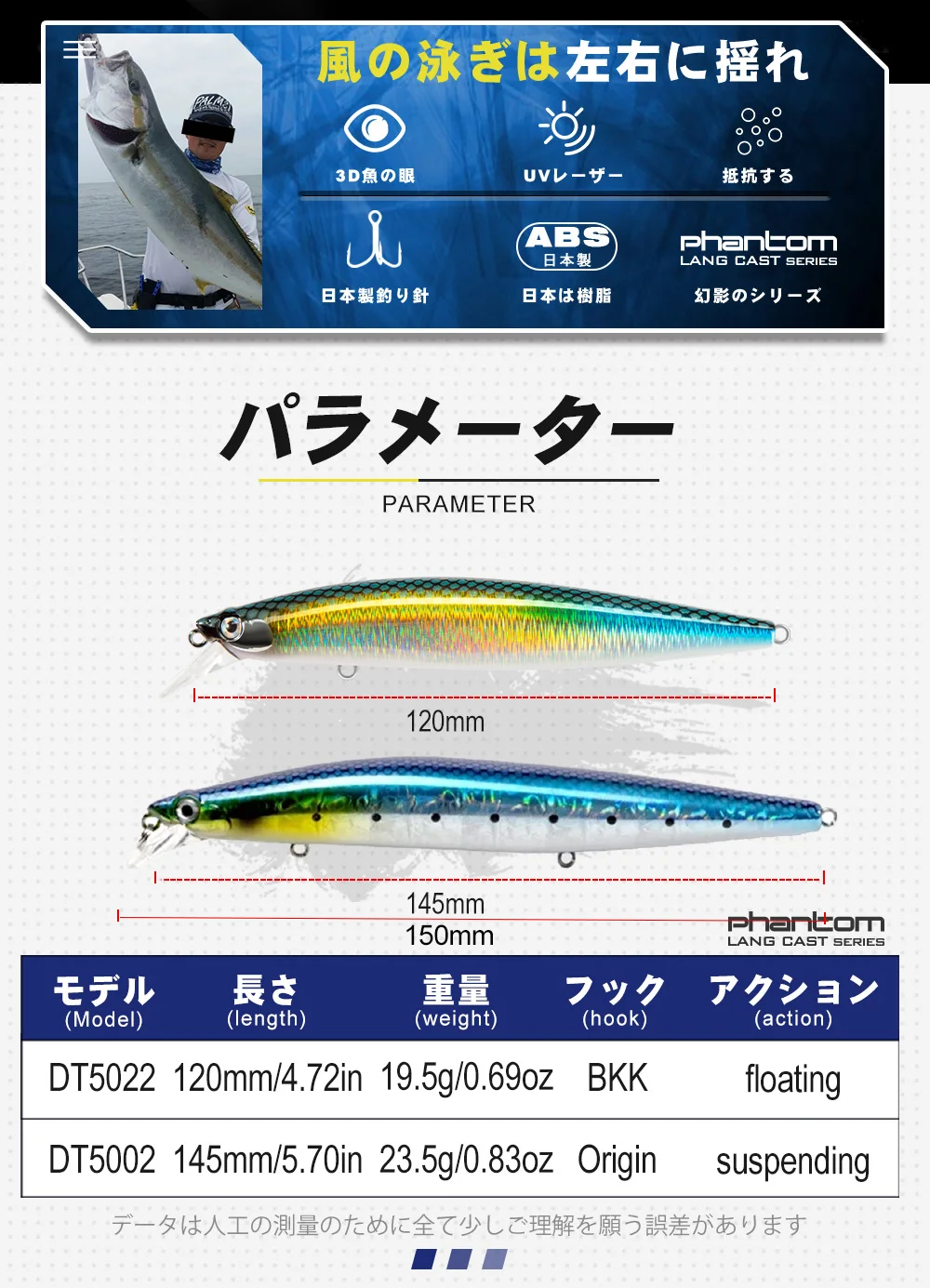Señuelo suspendido de pesca silencioso D1, asesino marino, 145mm, 23,5g, 120mm, flotante, luminoso, calidad Artificial, Wobbler, Jackbait, cebo duro