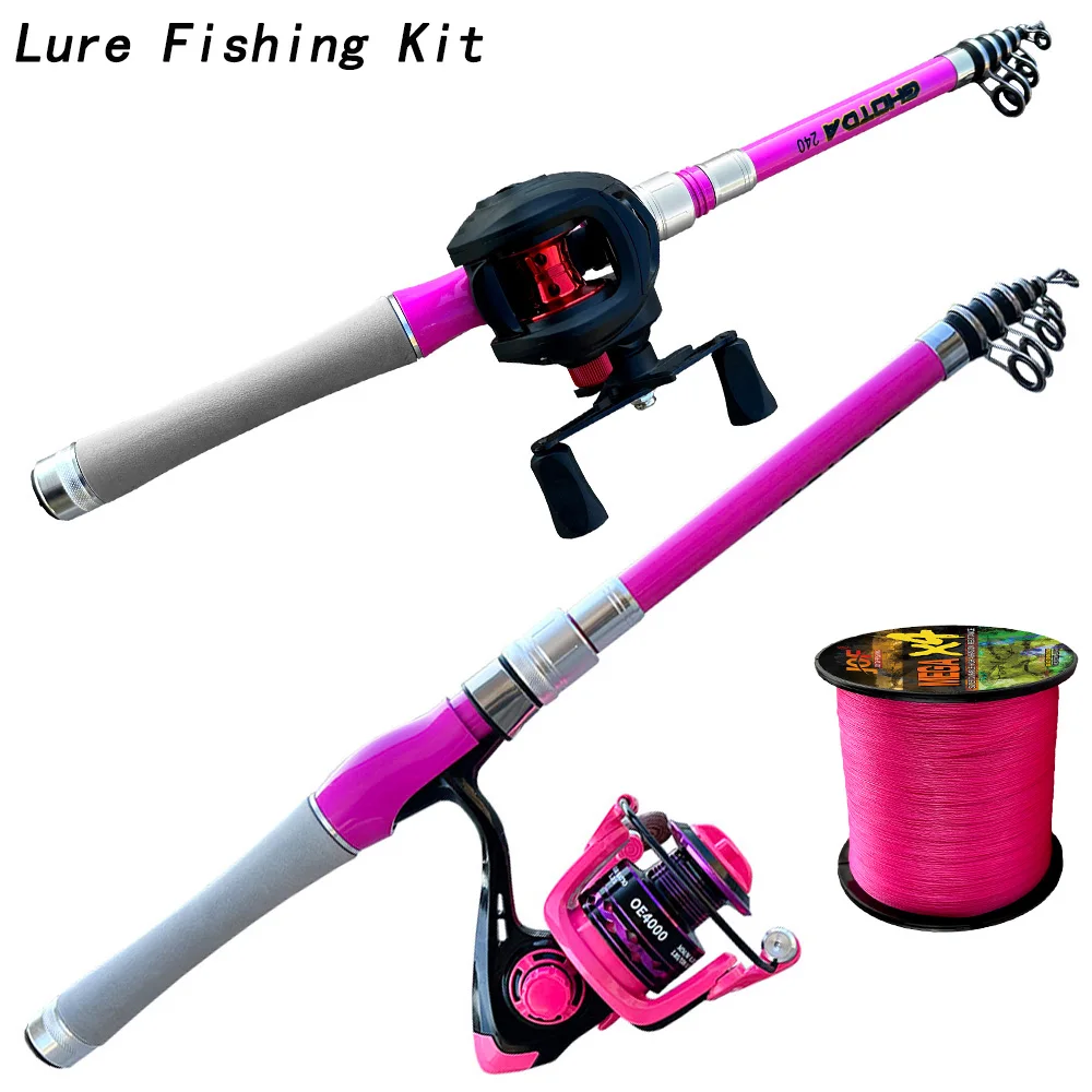 Combo de línea de caña de pescar con señuelo telescópico 1,5-2,4 M 5,2: 1/7,2: 1 relación de engranaje de alta velocidad Baitcasting carrete giratorio aparejos de Pesca