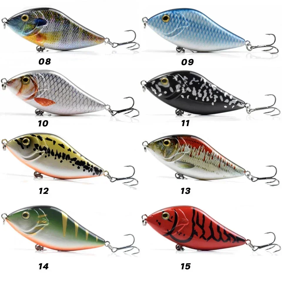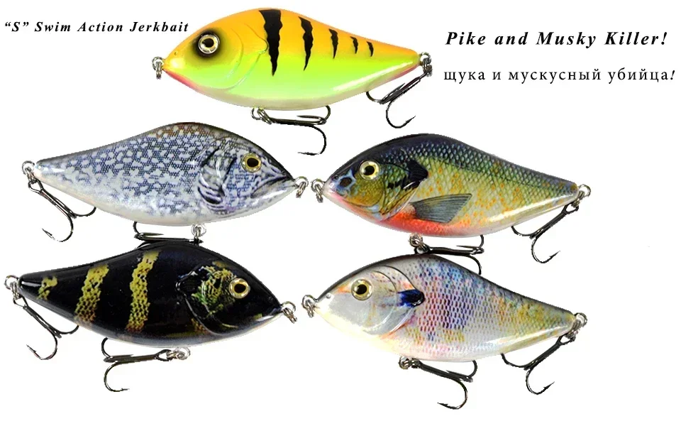 Estructura general: la estructura interna utiliza la bola de acero para equilibrar la conducción.Cuando toma la línea, la bola del cuerpo se transmite a otras partes y produce sonido, lo que puede hacer que el pez persiga.La forma está hecha de acero al carbono con 2 anzuelos triples súper afilados para garantizar que el pez no se escape.Esos Jerkbaits son ideales para capturar especies marinas y de agua dulce.