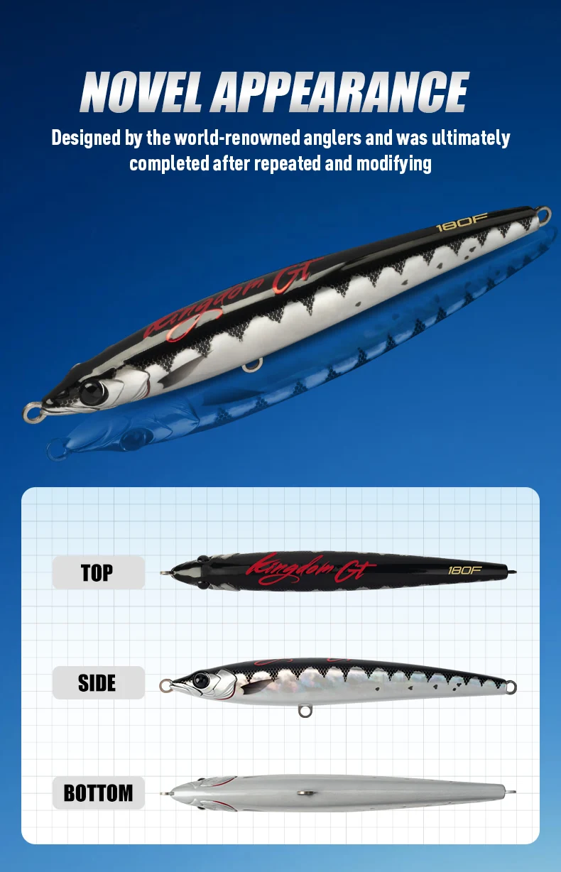 Kingdom-señuelo de lápiz flotante 180mm 40g 200mm 54g 230mm 73g Topwater GT atún cebos duros artificiales para pesca en el mar en agua salada