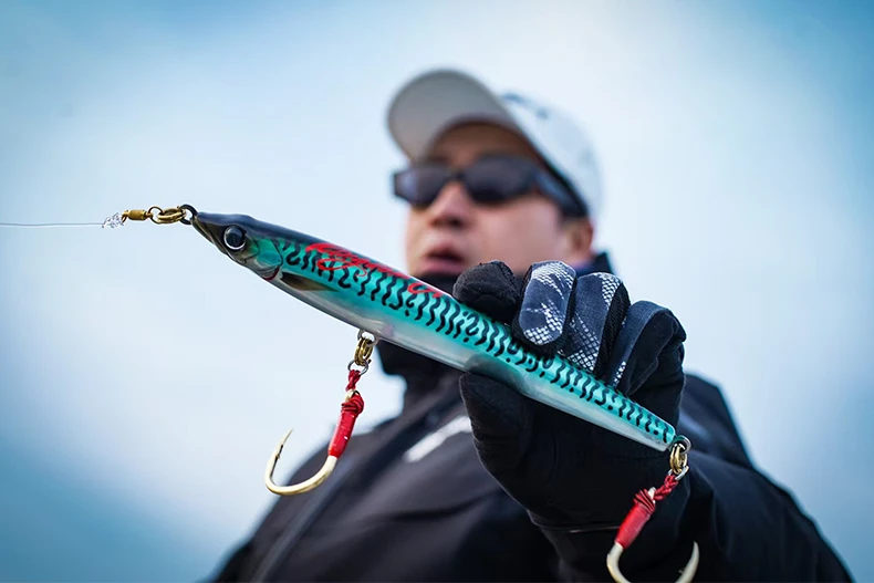Perfil largo y delgado: su forma delgada permite lanzamientos largos y movimientos realistas, lo que los hace ideales para la pesca en aguas abiertas y en bordes de arrecife.