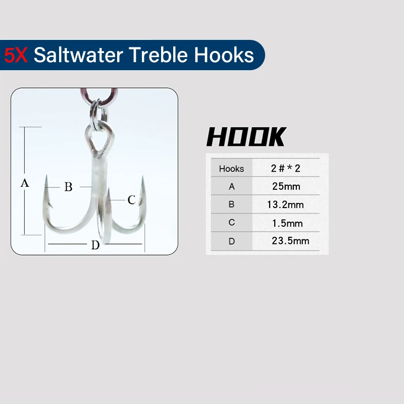 Ganchos de servicio extremo para ganchos confiables: Equipados con anzuelos triples de agua salada reforzados 5X de alta resistencia con puntas afiladas y un poder de penetración superior para fijar a gigantes de boca dura, incluso en estructura.