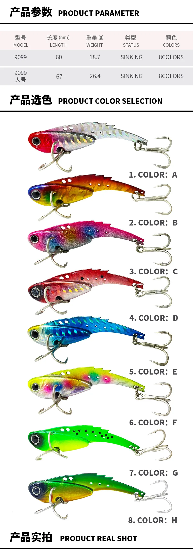 Señuelo de tiro largo sumergido VIB para pesca con señuelo, 60MM/67MM, punta de natación temblorosa 18,7G/26,4GB, señuelo de pesca con cebo falso VIB