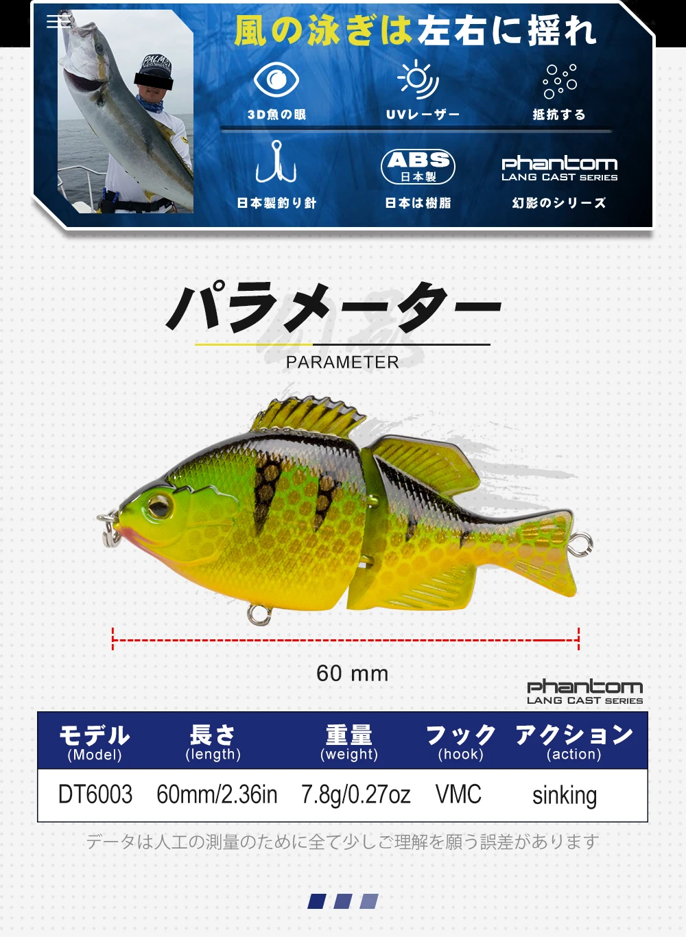 D1 Multi articulado VIB señuelo 60mm/7,8g hundimiento sin labios cebo duro invierno agua dulce Wobbler para lubina aparejos de pesca