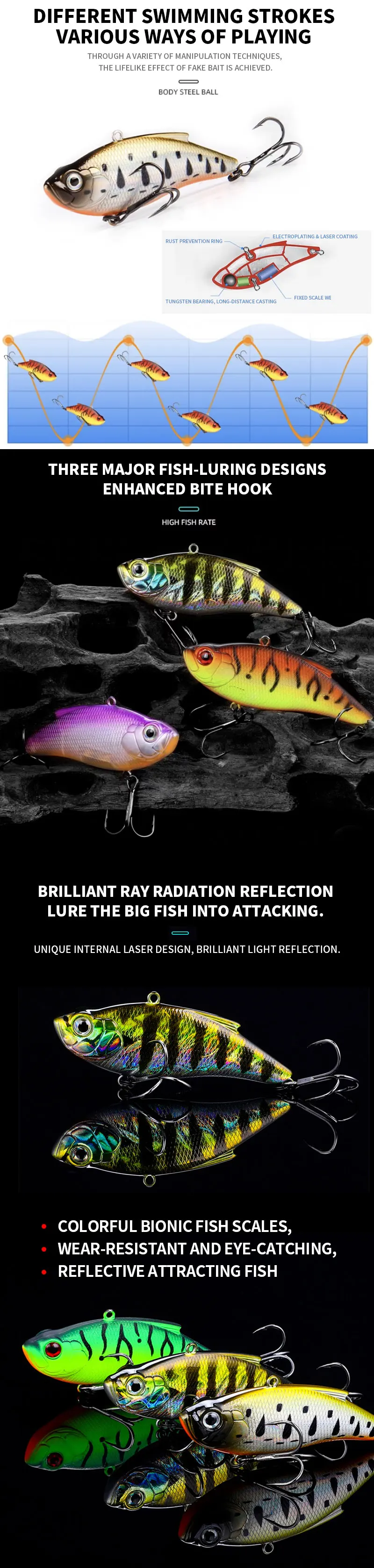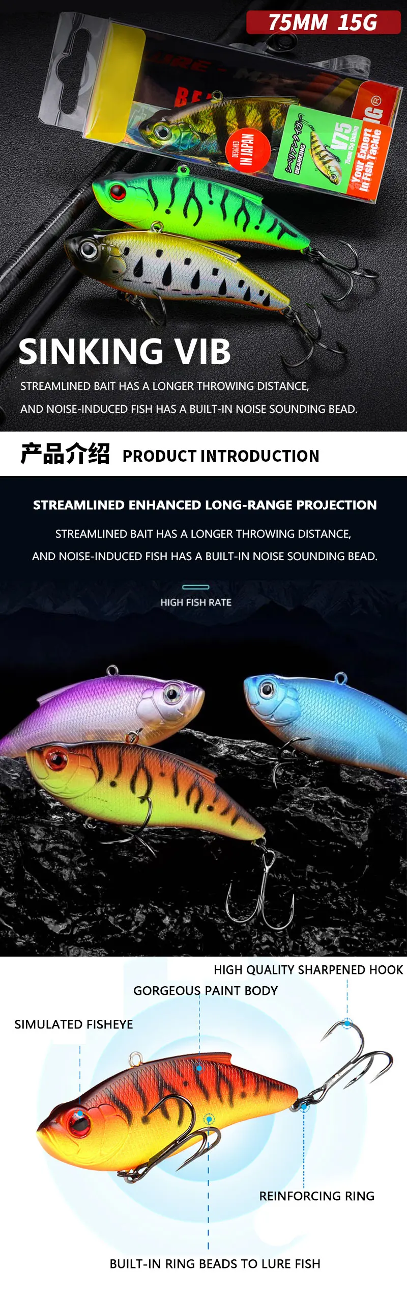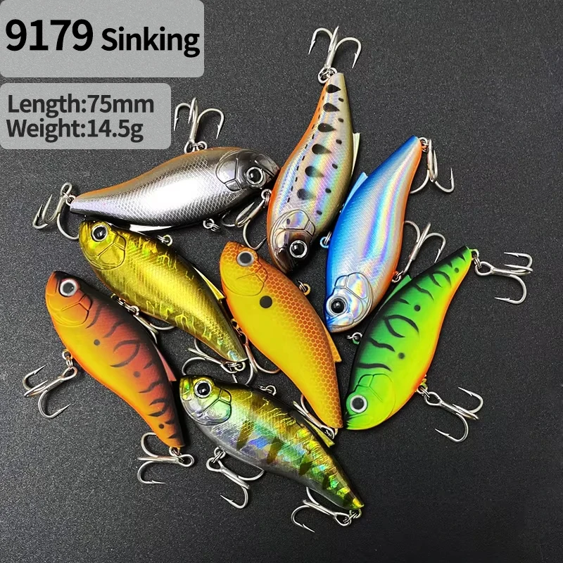 Señuelo con vibración que se hunde, 75mm, 14,5g, Crankbait sin labios con bola de acero en el interior, tendencia de pesca, curricán de agua salada, cebo duro Artificial