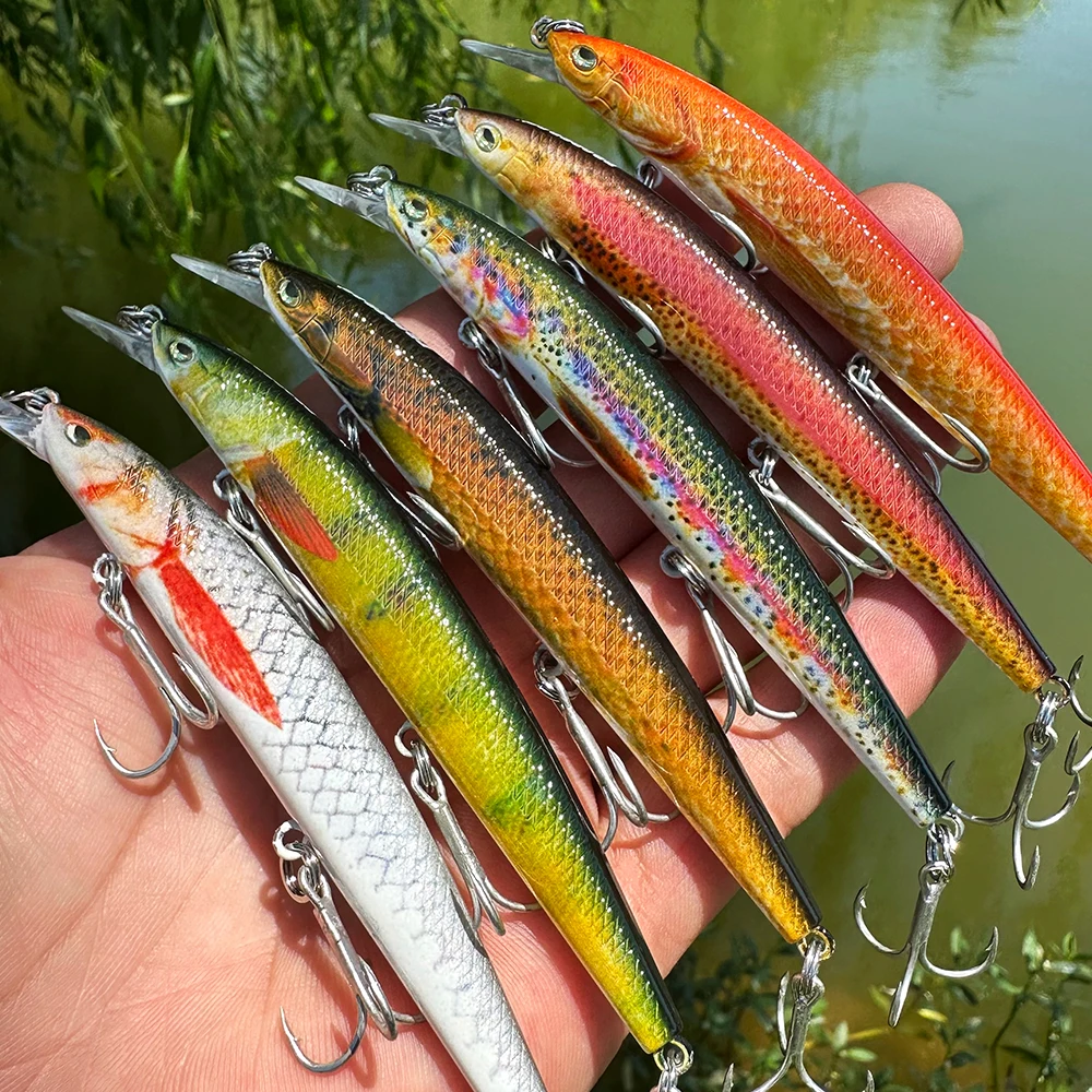 Señuelo Wobbler realista, ojos 3D realistas, flotante, para lubina, trucha y anzuelos más afilados, cebo de pesca al aire libre, 11,5 cm, 1 unidad