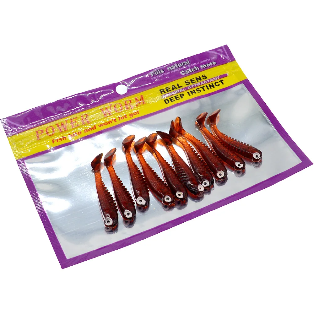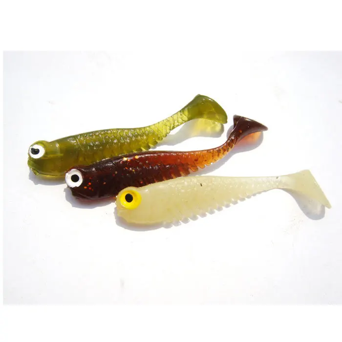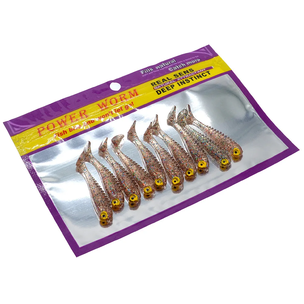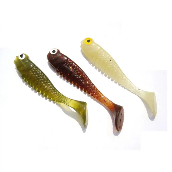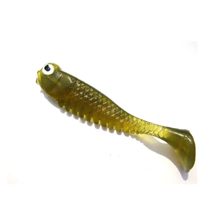 Señuelos artificiales blandos de pez pequeño, 5cm, olor a pescado, verde, morado, brilla en la oscuridad, gusano, 10 unidades por bolsa