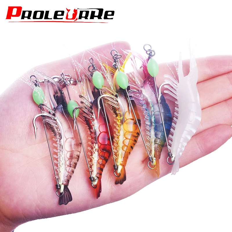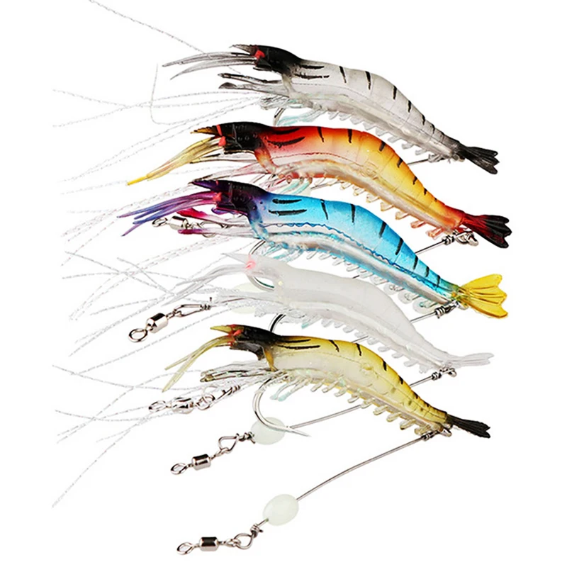 5 unids/lote de cebo suave de camarón falso de silicona luminosa 75mm 5g señuelos artificiales con gancho giratorio de cuentas brillantes para pesca en el mar Sabiki Rig
