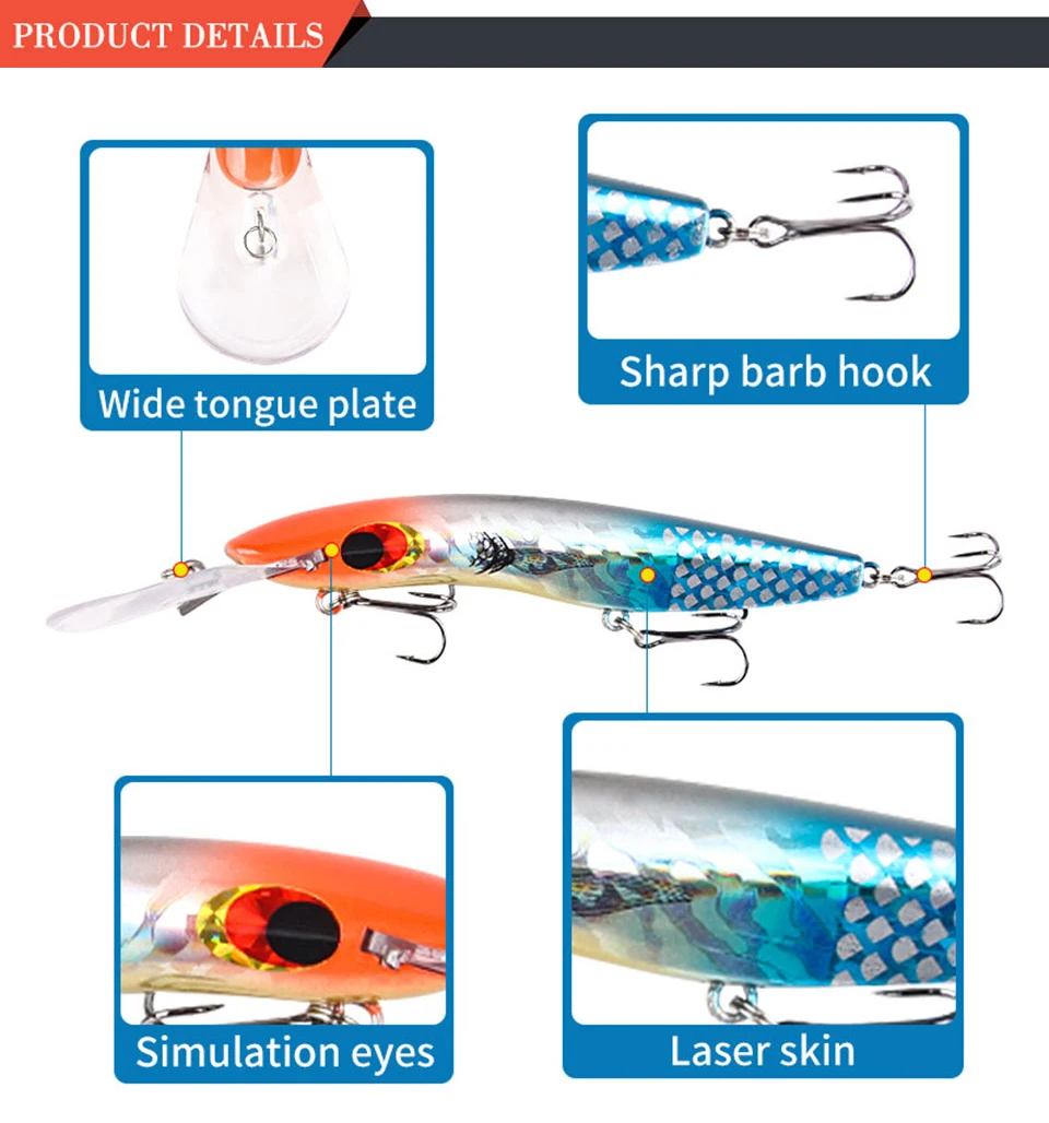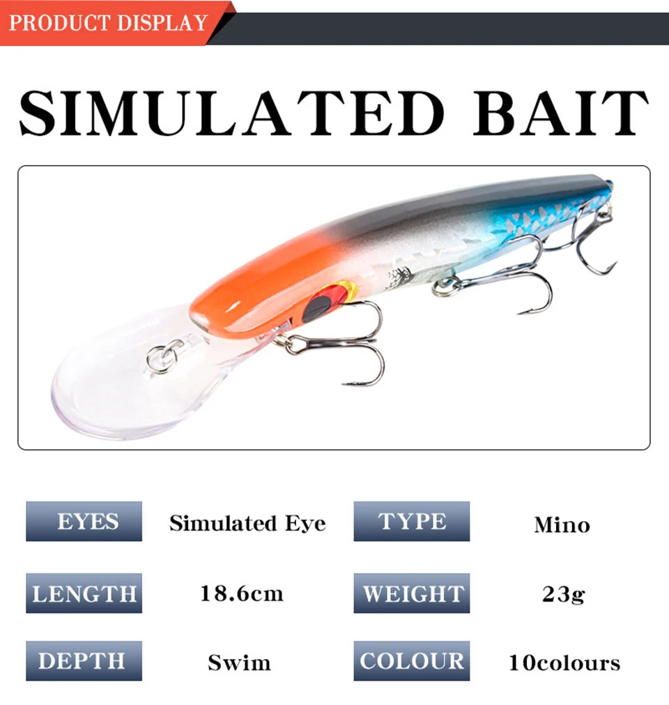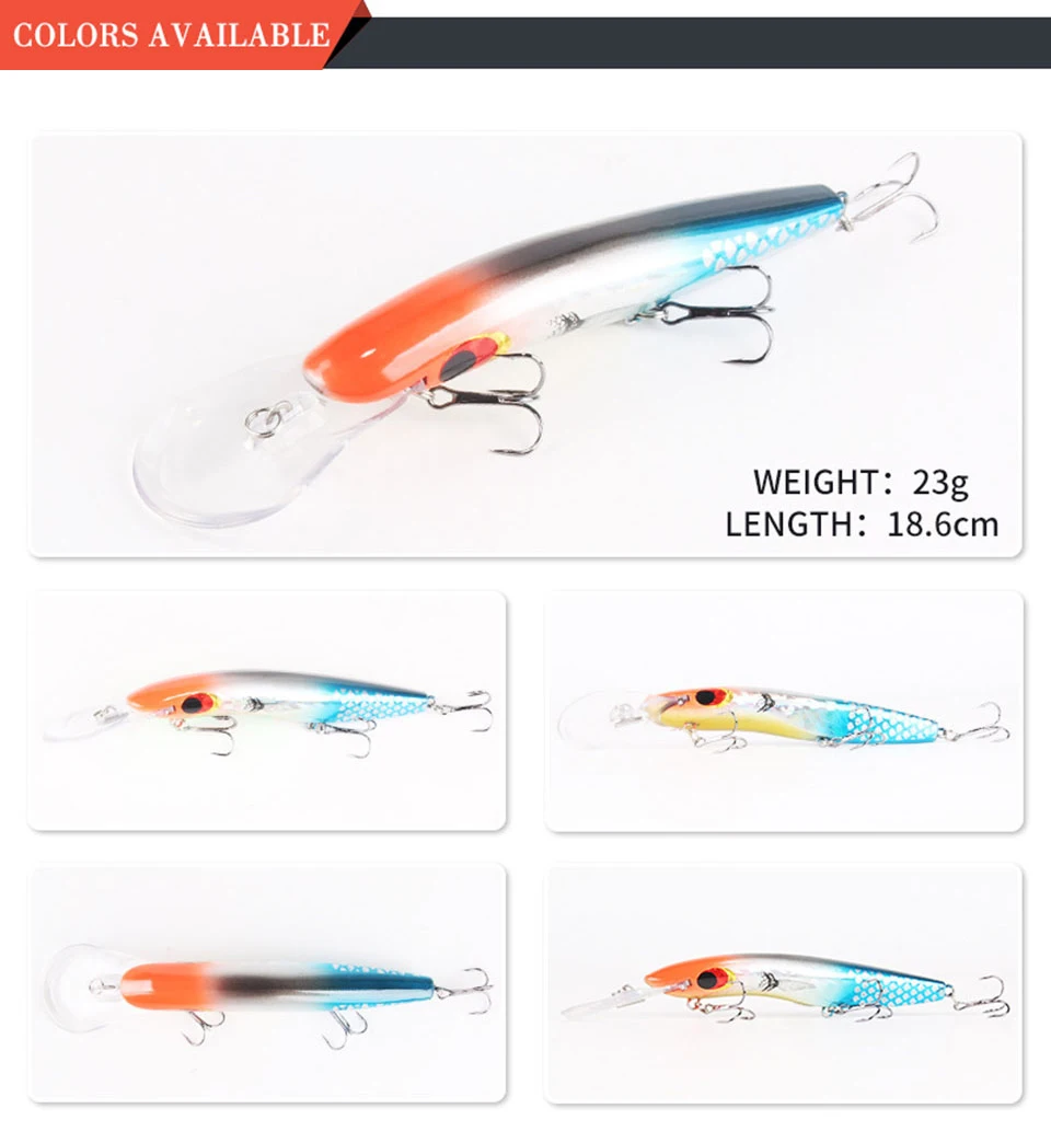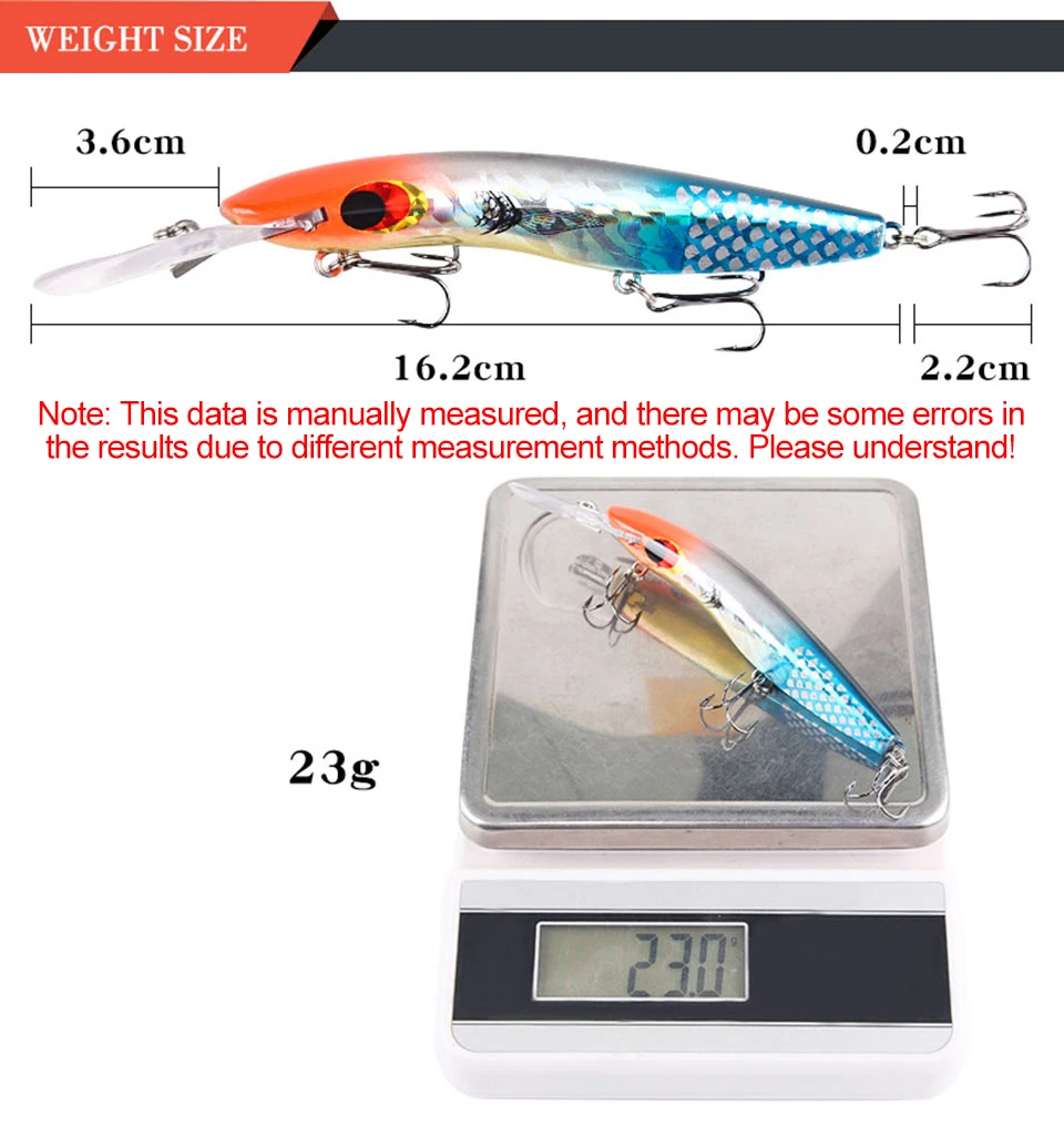 Señuelos de pesca de pececillo grande de 16,2 cm/23G, Wobbler Artificial Crankbait, anzuelos triples de plástico para buceo profundo, lubina, Lucio, río