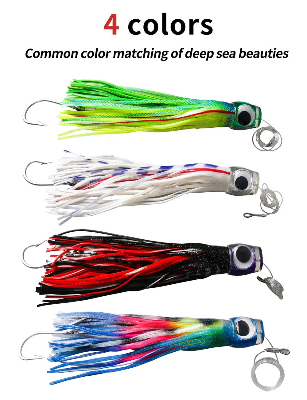 Señuelos de atún de falda de curricán, 34cm, 260g/13,4 pulgadas, 9oz, anzuelo de pesca para barco de aguas profundas, señuelos de agua salada para Mahi Marlin Wahoo, 1 unidad