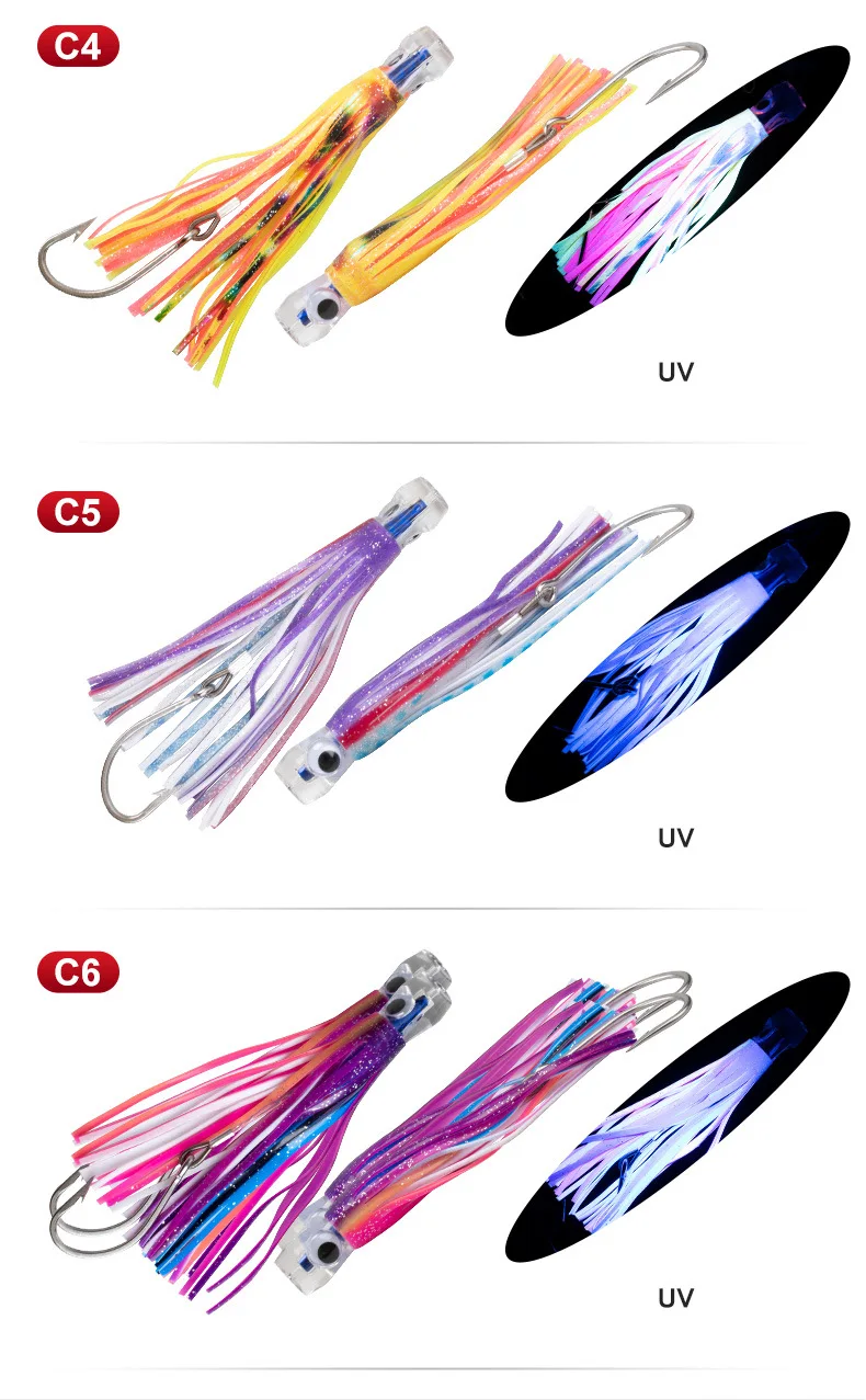 Falda de curricán Señuelos de atún 50g/16,5 cm 110g/23cm Barco de hundimiento Pesca Señuelos de agua salada para Marlin Mar Trolling Cebo de pesca