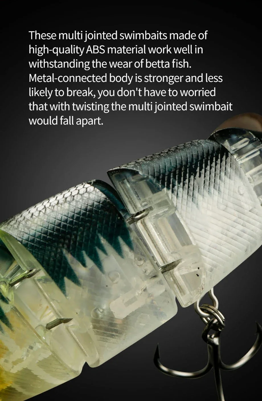 *El cuerpo conectado con metal es más fuerte y tiene menos probabilidad de romperse, no tiene que preocuparse de que al girar el swimbait multiarticulado se deshagan.