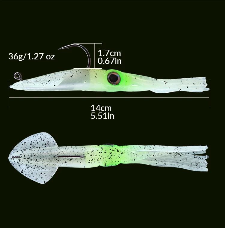 El paquete incluye: 2 uds. De cebo blando para calamar