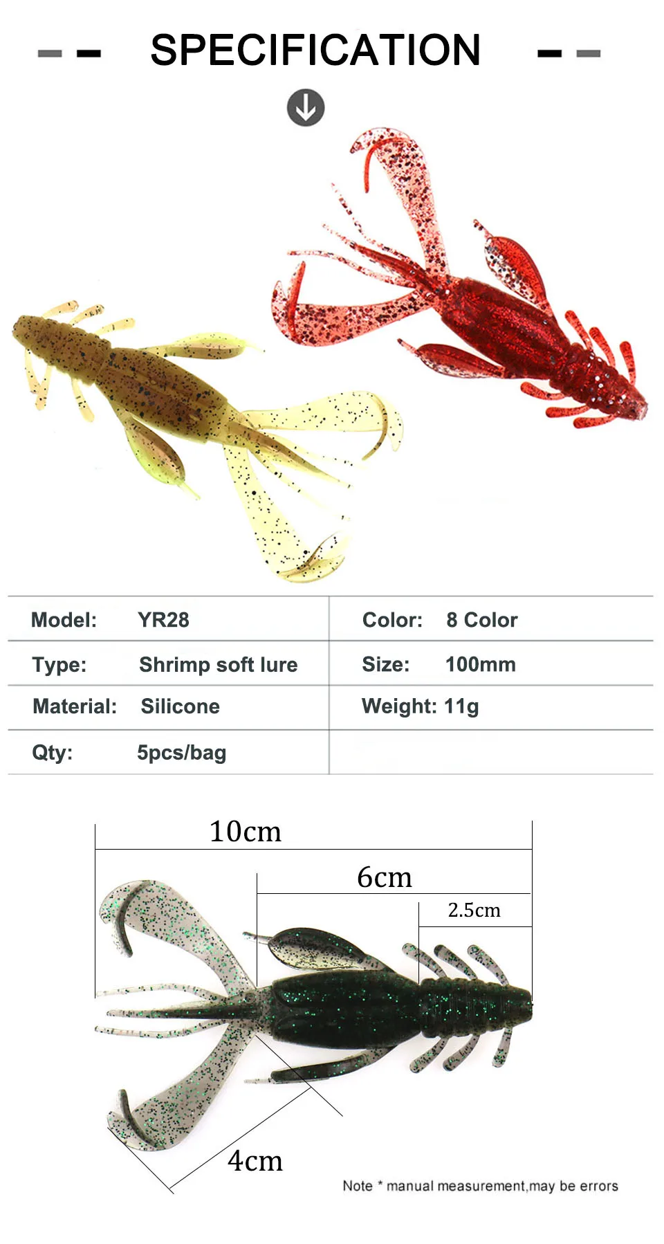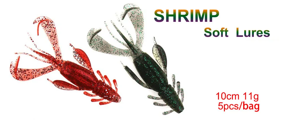 Señuelos blandos de Camarón, cebo de silicona suave, 10cm, 11g, Wobbler, gusanos de Camarón, lubina, langosta, aparejos de pesca