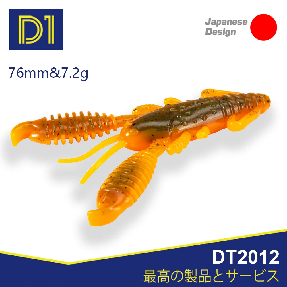 Señuelos blandos de camarón D1, cebo Artificial Swimbait de 4 piezas y 76mm, cebo de pesca, Wobblers de agua dulce para perca, aparejos de pesca de lubina DT2012