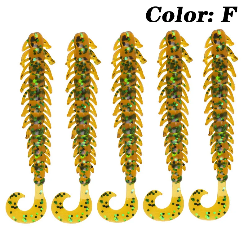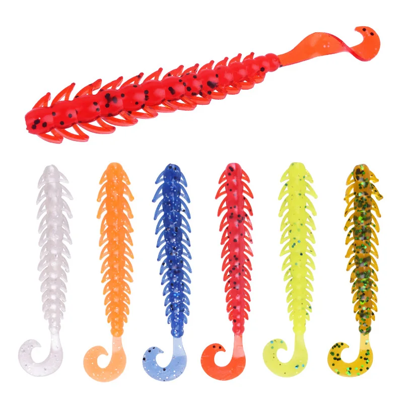 10 piezas de señuelos blandos Millipede Larva Tail 50mm 65mm cebos de plástico Artificial gusano de pesca lubina de silicona Minnow Swimbait Jigging