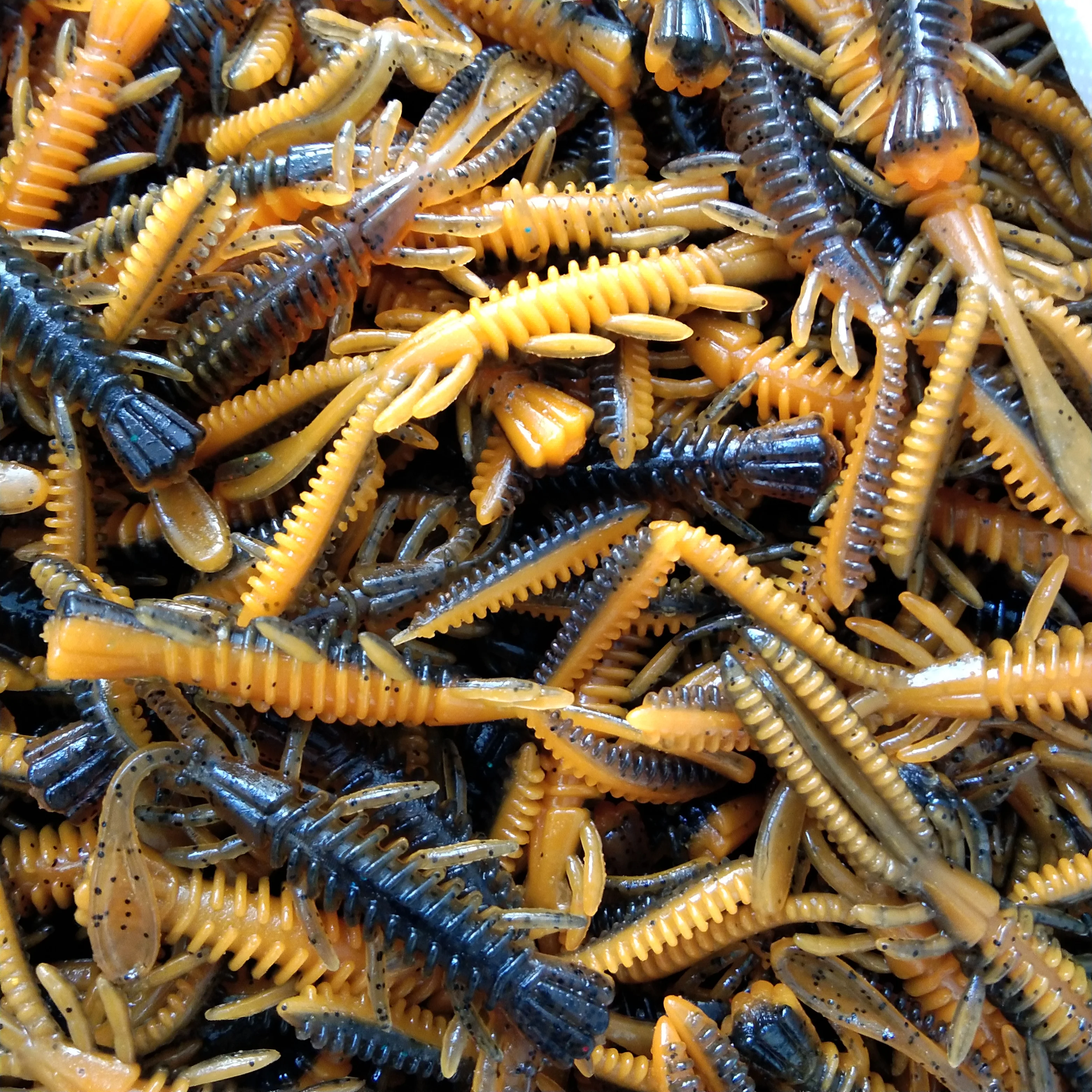 Señuelos blandos flotantes para Pesca, cebo de Camarón, gusano de silicona, Wobbler, trucha, lubina, Texas, 100 piezas, 6cm