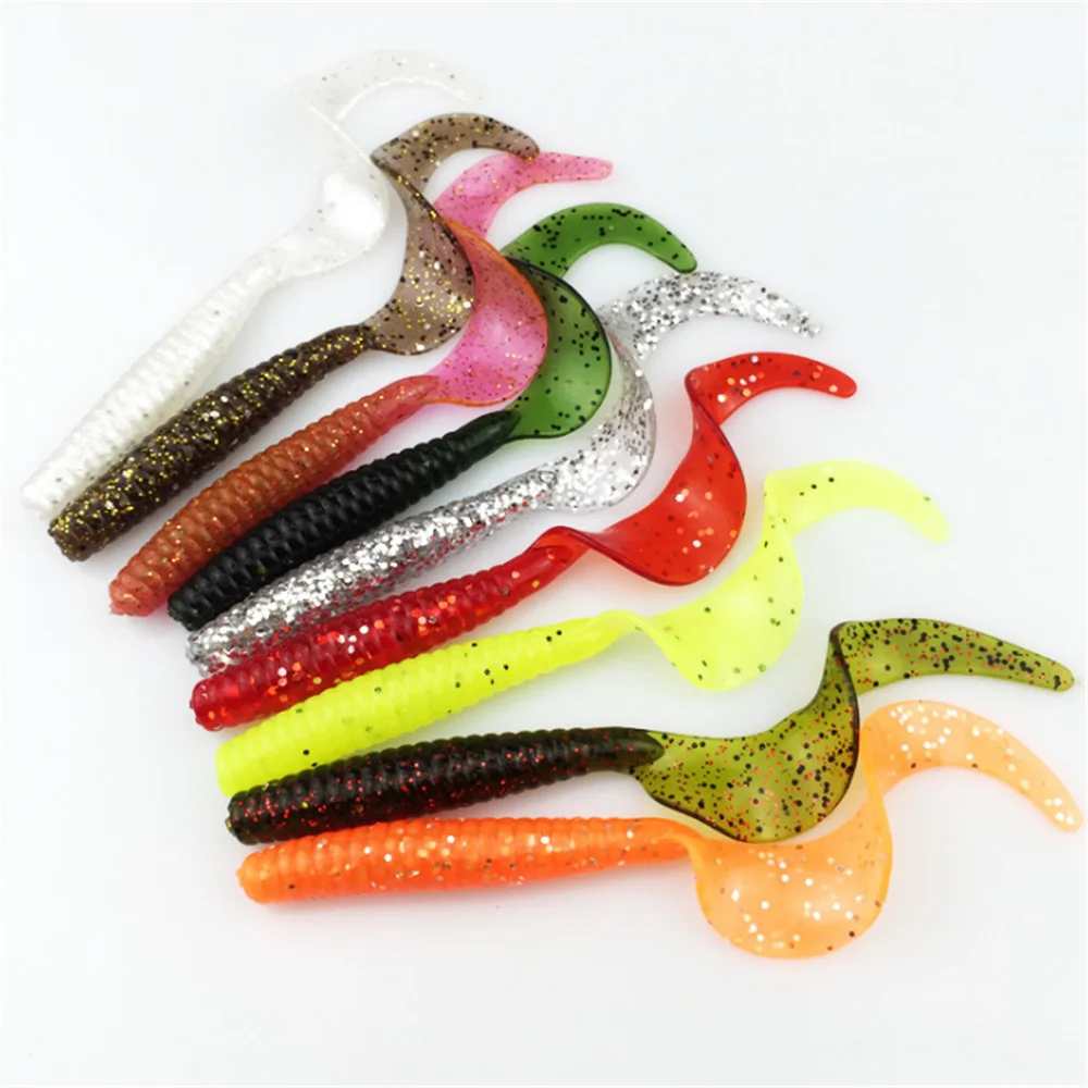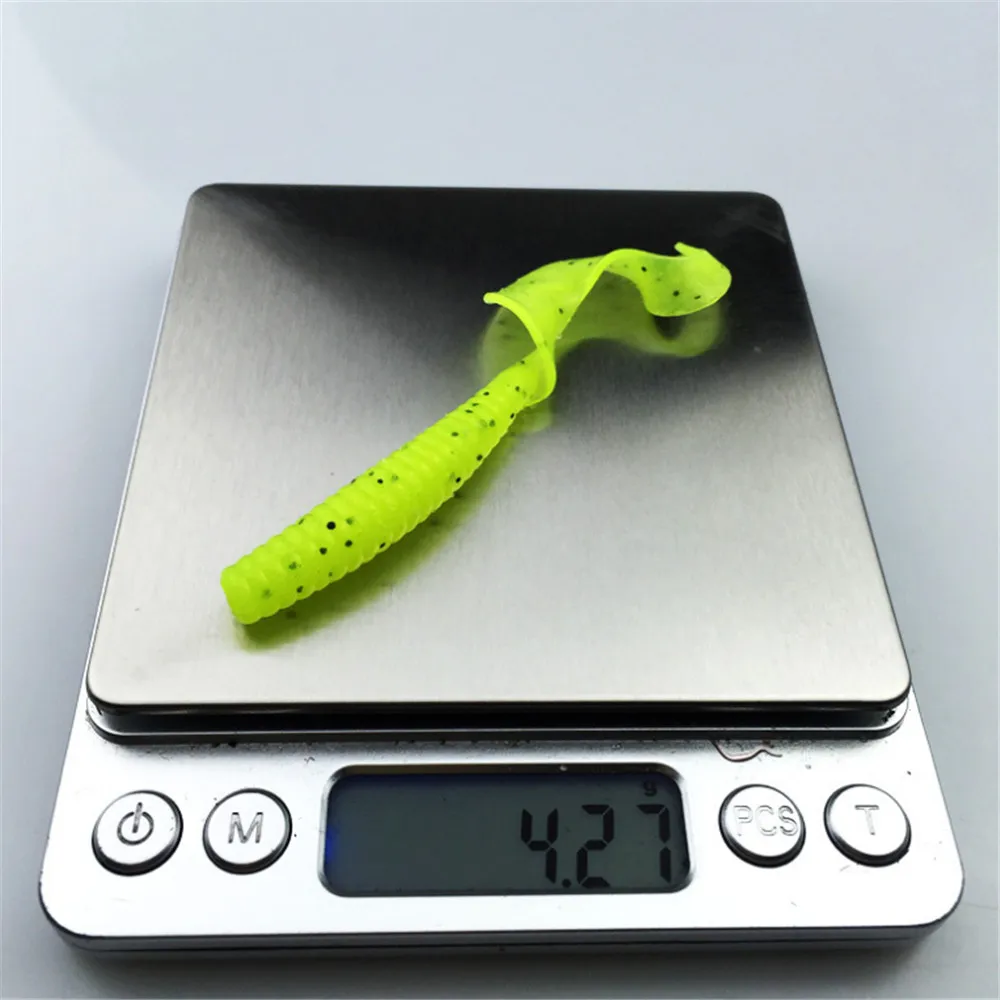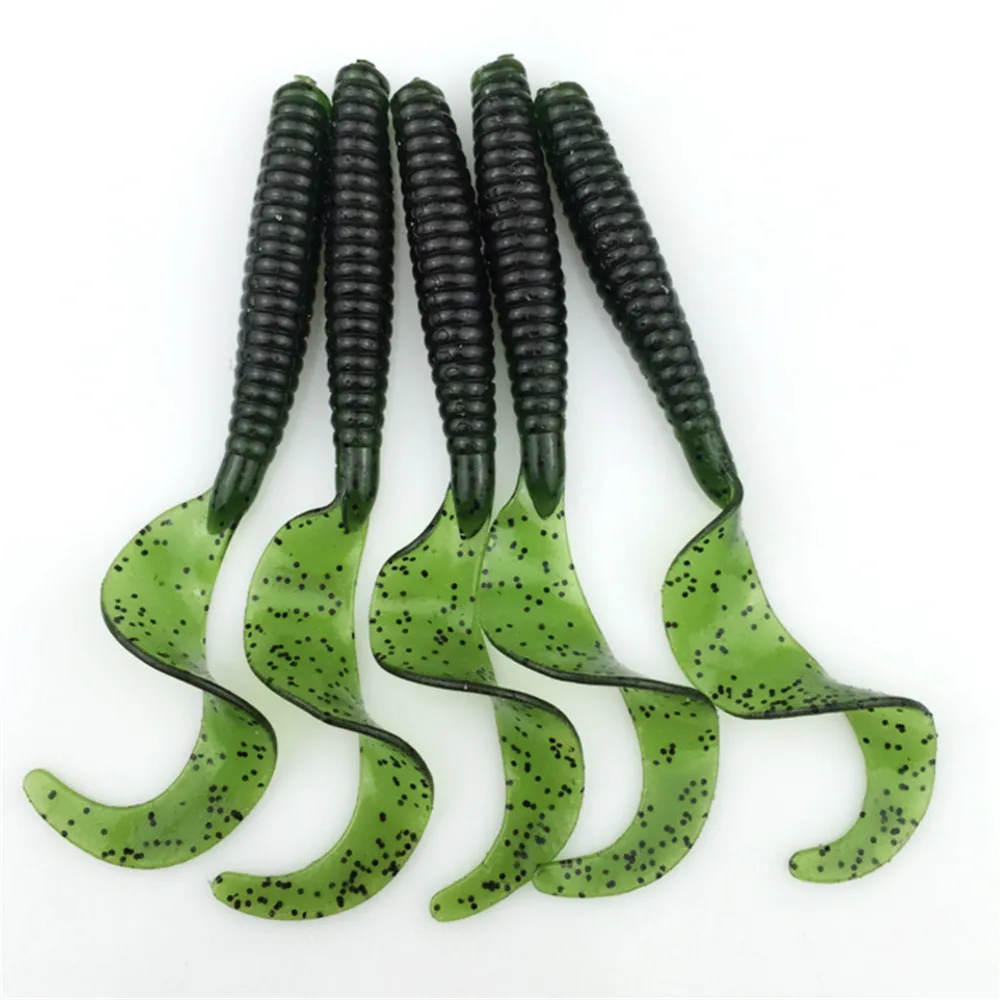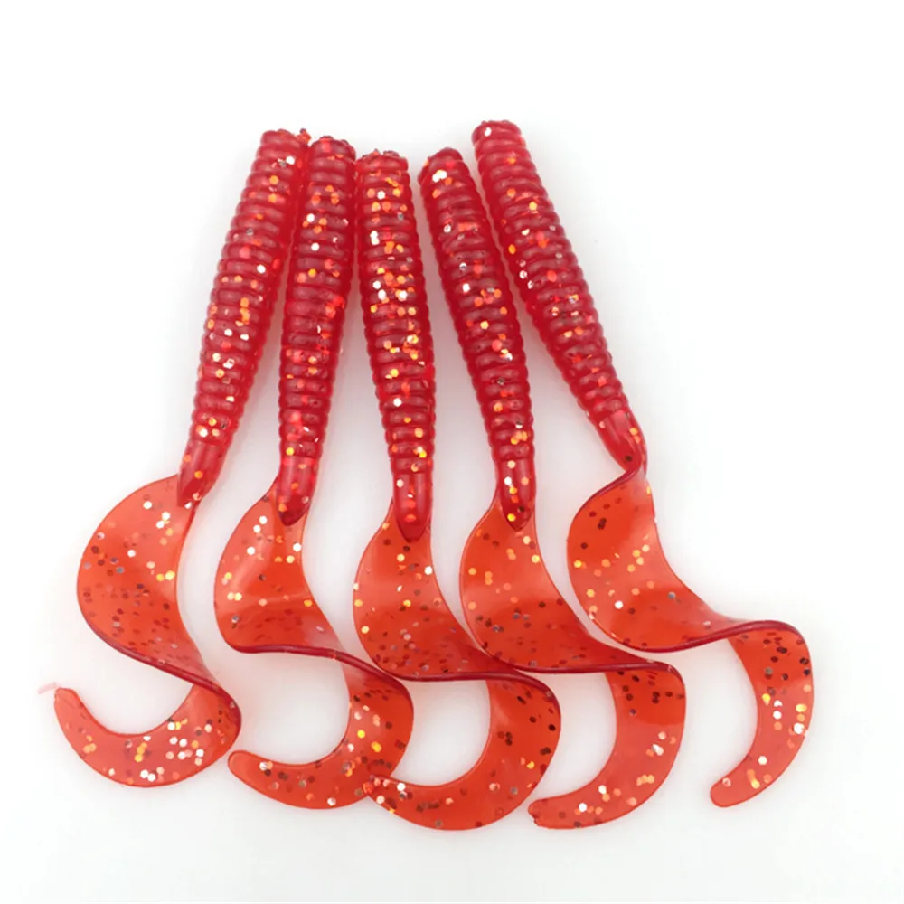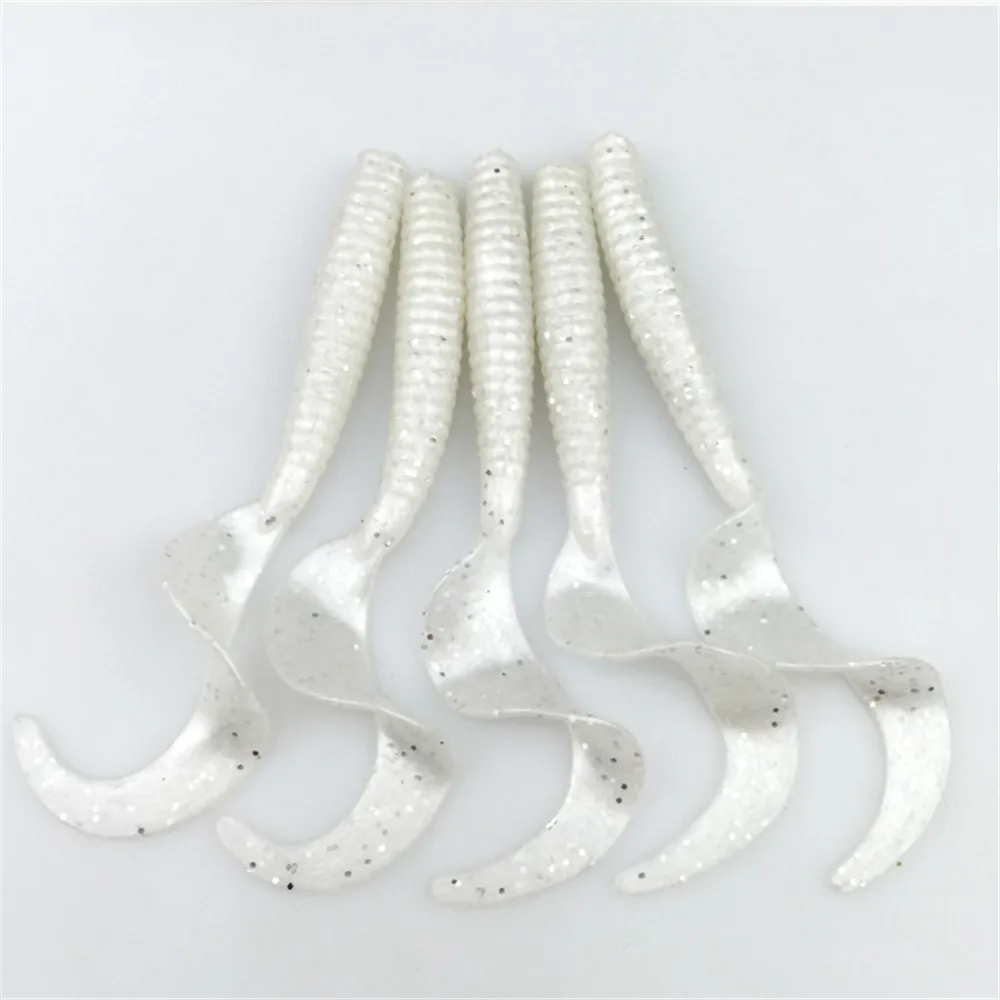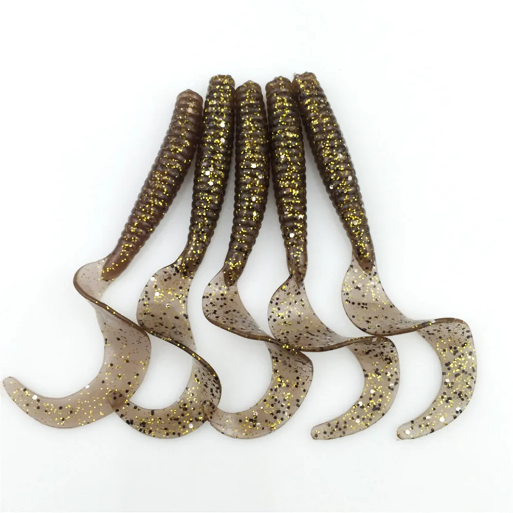 Señuelos blandos de gusano Wobbler de cola larga, cebo Artificial de silicona, 8cm, 4,2g de sal con olor a pescado, aparejos para carpa y lubina, lote de 5 unidades