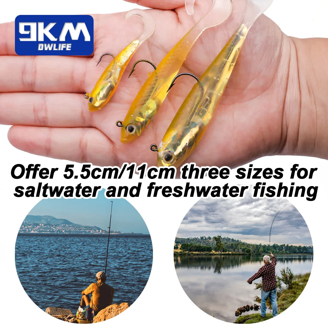 ALTAS CALIDADES: Hecho de plástico suave de alta calidad respetuoso con el medio ambiente, resistente para resistir la picadura del pez, señuelo muy bien hecho para mayor flexibilidad y durabilidad.Los señuelos de 9KM están diseñados por expertos y probados rigurosamente en diversos entornos acuáticos.El diseño experto y las pruebas rigurosas del patrón de peces de refracción de la luz hacen que los señuelos sean más realistas y atractivos.