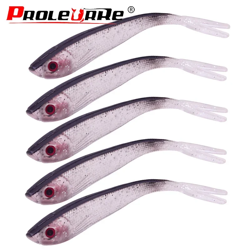 Señuelos blandos de pesca, 5 uds., 7,5 cm/10cm, 1,8g/4,3g, cola de horquilla, cebo Artificial suave, aparejos depredadores, gusano de pesca suave, Wobbles