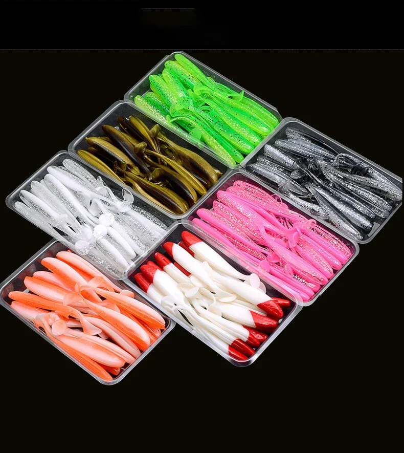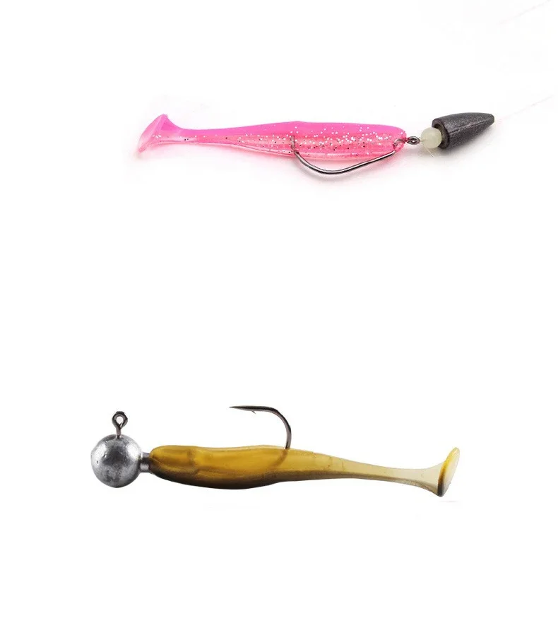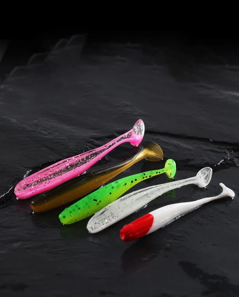 NUEVO Señuelos blandos de pesca Cebo 5-7,5 cm 1-3,1G Añadir olor T-tail Atrayente Bass Cebo suave artificial Wobblers Silicona plástico Swimbait