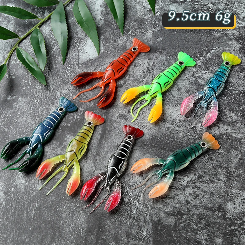 Señuelos blandos para pesca, cebos artificiales de Camarón, aparejos de pesca, langosta, gusano, Anguila, Swimbaits, cabeza de plantilla, herramientas de pesca de 95mm
