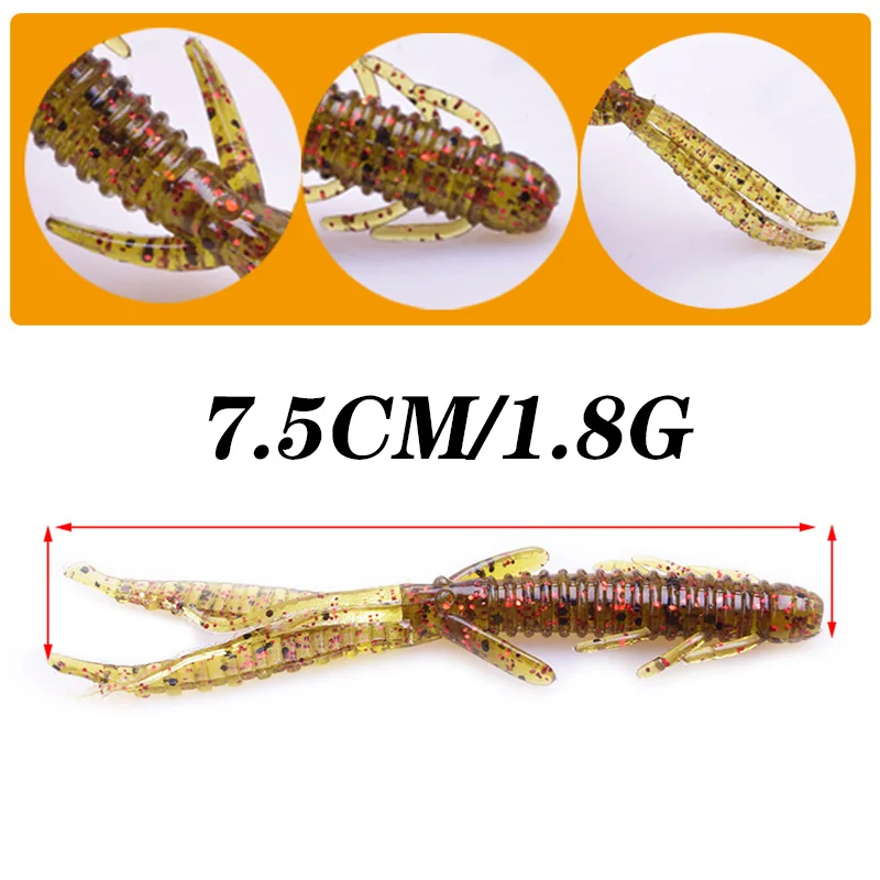 5 señuelos blandos de gamba con olor a pescado por unids/lote, 7,5 cm, 1,8g, gusanos, señuelos, Señuelos de Pesca, Señuelos de Pesca, de silicona, fáciles de deslizar, cebo Artificial