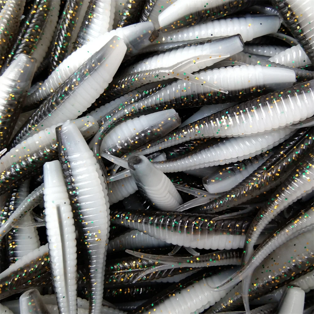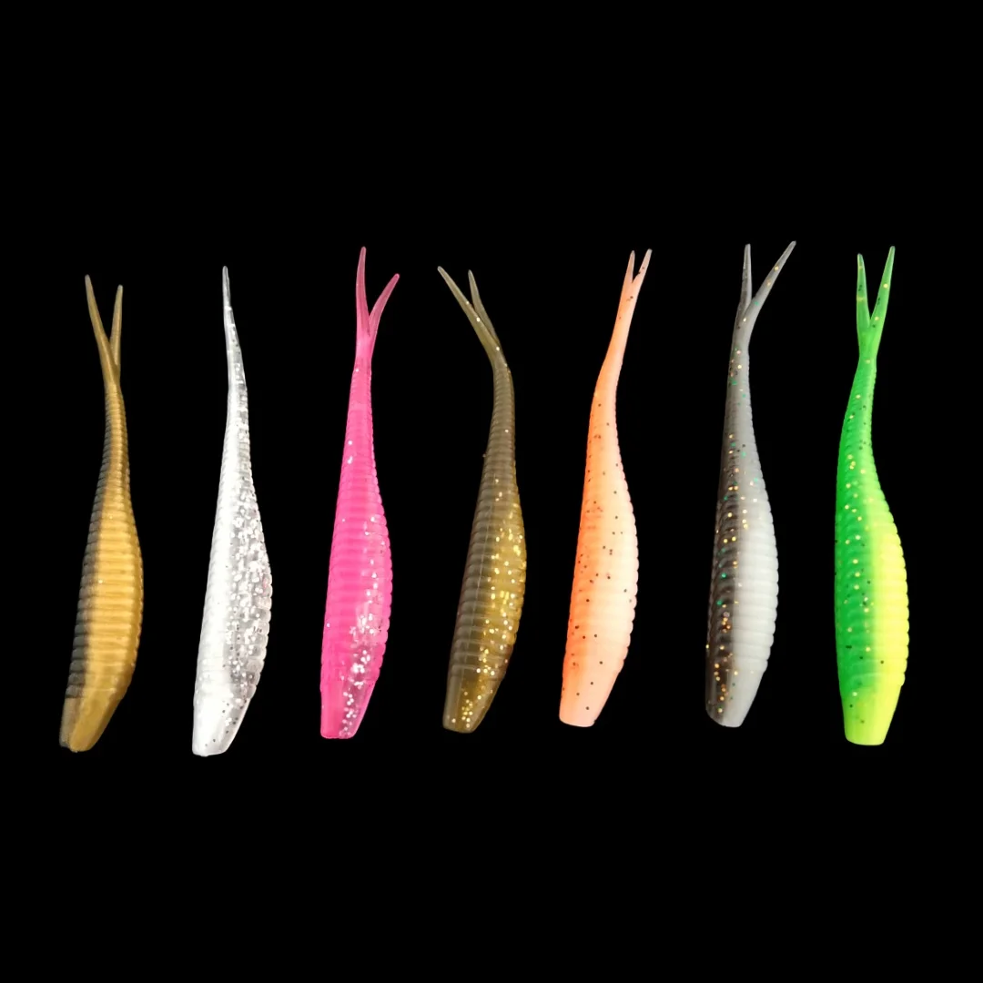 Señuelos blandos de pesca de piezas, cebos de plástico de 7cm, cola de paleta bifurcada realista, Swimbaits para agua dulce para Crappie Bass Walleye, 10 unidades
