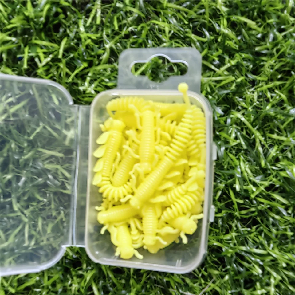 Señuelos blandos de plástico blando, Larva, 40mm/0,35g, flotantes, Swimbaits de agua dulce, gusano de cebo blando de silicona para pesca, nuevo alcance