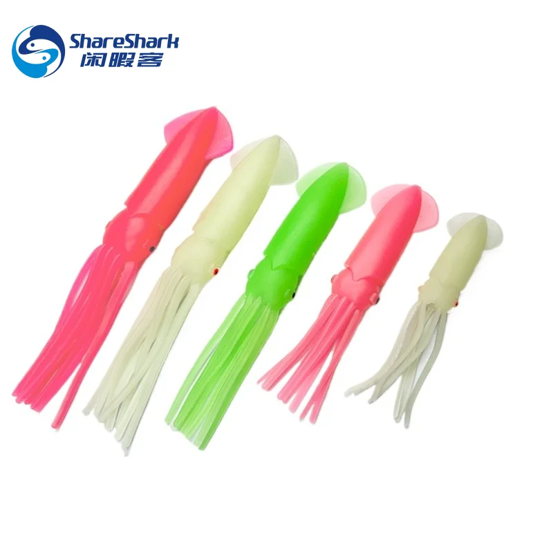 Pesca señuelos de calamar suave Calamar de silicona curricán Jigs accesorios de cebo luminoso Artificial agua salada pulpo calamar falda