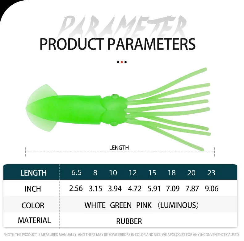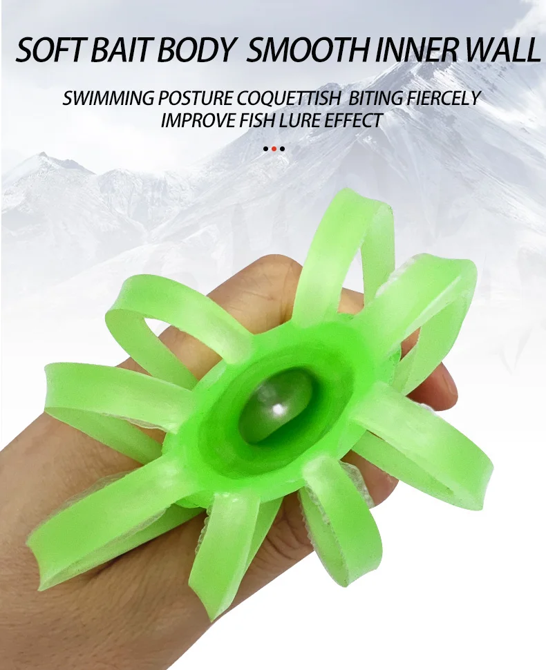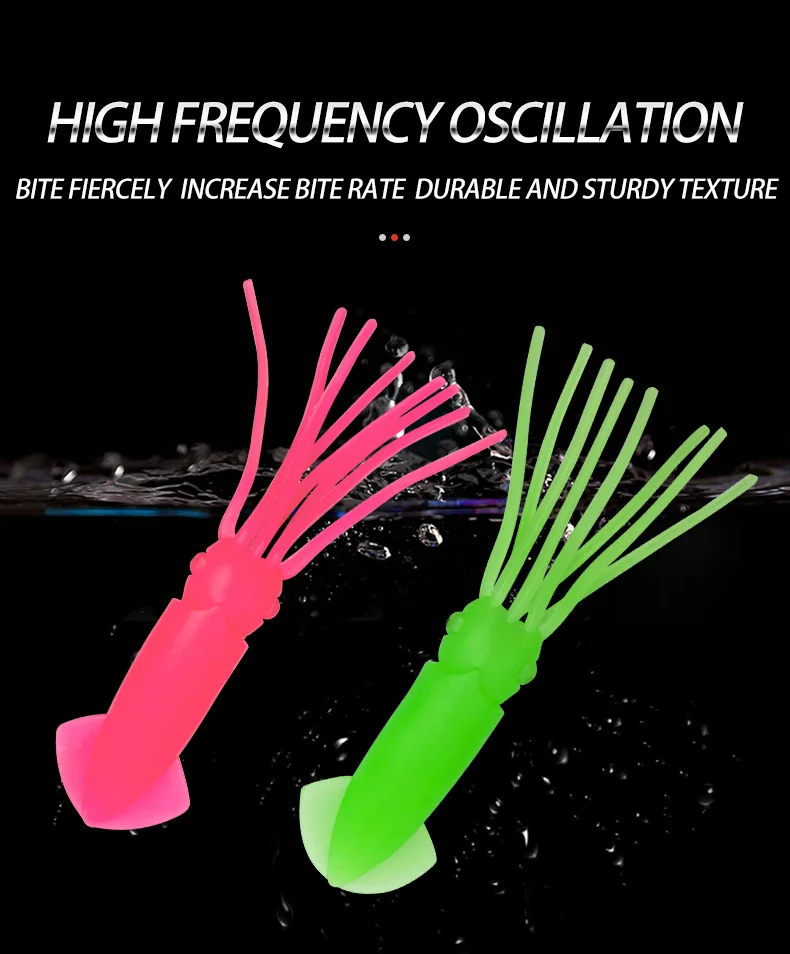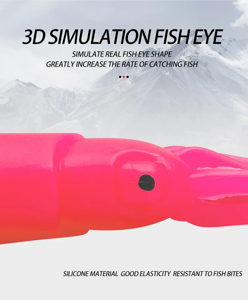 【Material】:El cebo de pesca con falda de calamar está hecho de caucho de alta calidad, suave y resistente, resistente al desgaste y a las mordeduras.