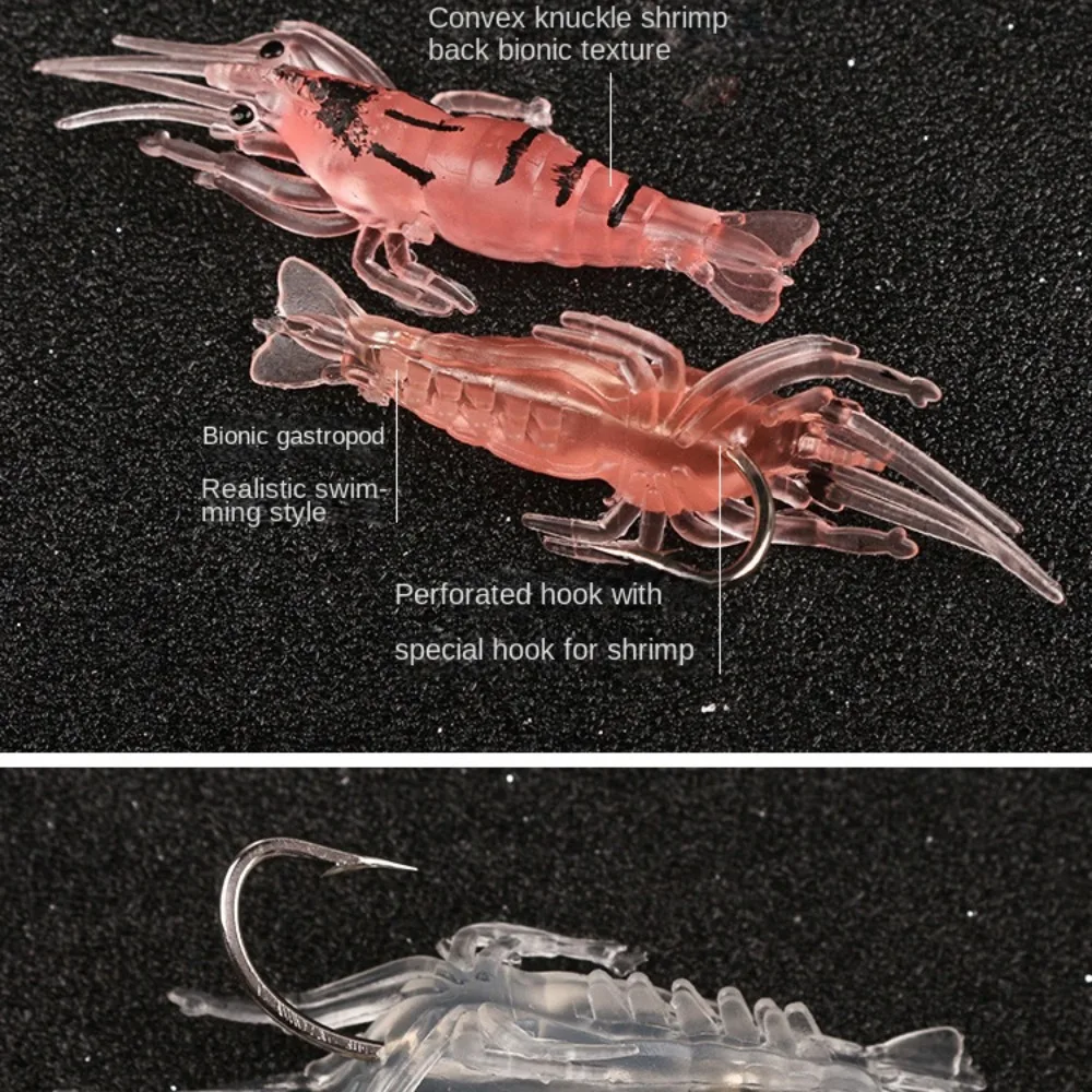 2. Señuelos para camarones, señuelos de pesca de camarones suaves para juegos de cebo luminoso para camarones de agua dulce y salada.