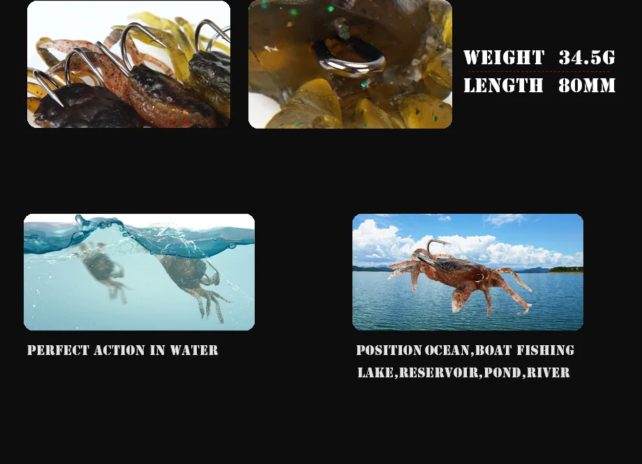 Señuelos de cangrejo de Pesca blandos, cebo Artificial de 34,5g y 80mm con anzuelos de simulación para agua salada, juego de Señuelos de Pesca de carpa, 3 unids/lote