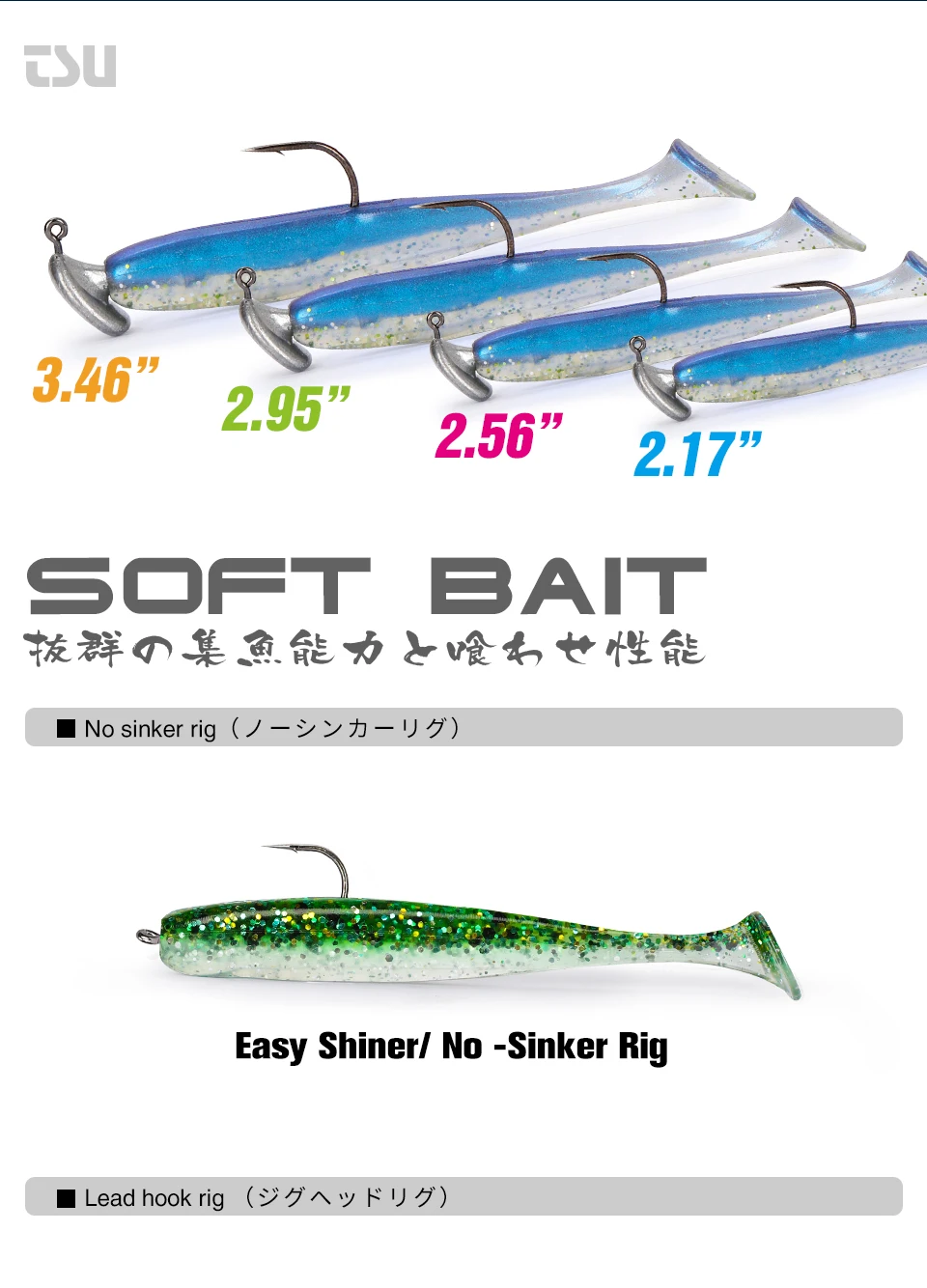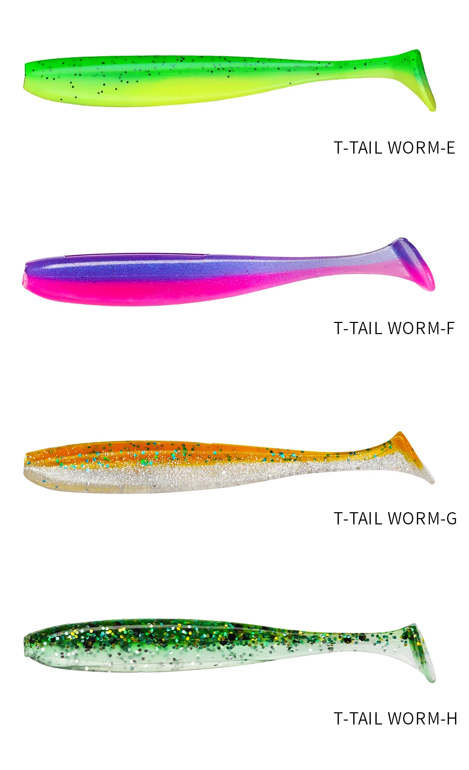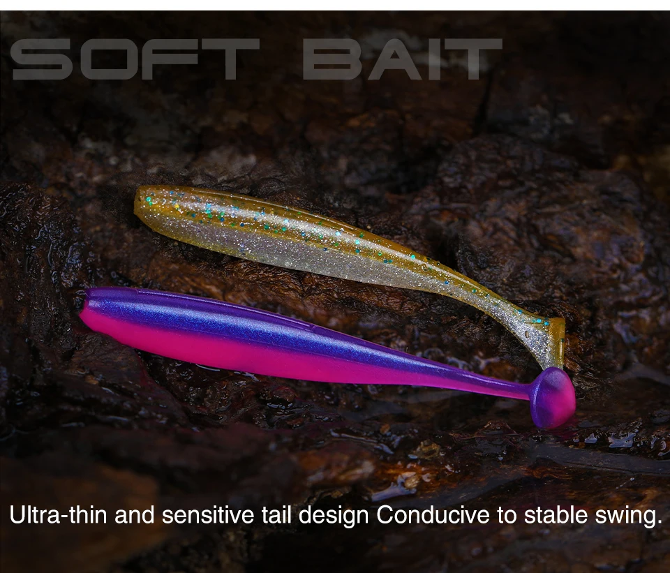 TSURINOYA-Señuelos de Pesca de cola en T, 55mm, 65mm, señuelos blandos artificiales, aparejos de cebo, cebos de Lucio, doble Color