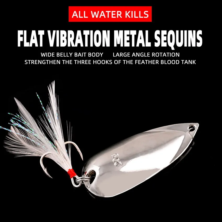 Señuelos de cuchara giratoria de Metal, cebo duro, lentejuelas, aparejos de pesca artificiales, trucha, oro y plata, 7g-20g, 1 pieza