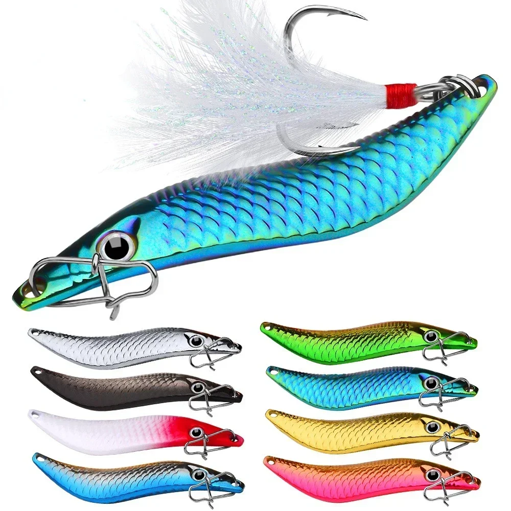 Señuelos de cuchara giratorios de sanguijuela VIB de Metal, cebo Artificial de 7g, 10g, 15g, 20g con anzuelo de plumas, aparejos de pesca nocturna para lubina, perca