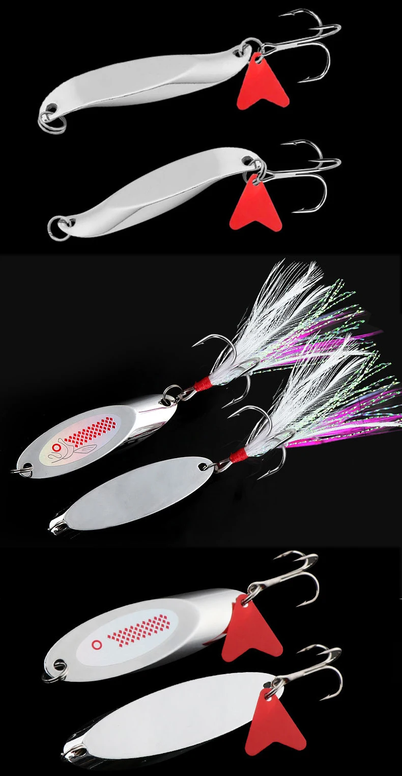 Señuelos de cuchara de Metal, cebo duro de lentejuelas artificiales, aparejos de pesca de trucha, agua salada, 7g-80g, gran oferta