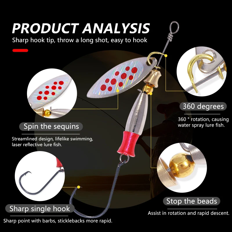 Cebo Giratorio para Pesca de Lubina, Cebo de Metal, Cebo Duro Artificial con Gancho Triple para Pesca de Lubina, 1, 7g, 82mm, 82mm